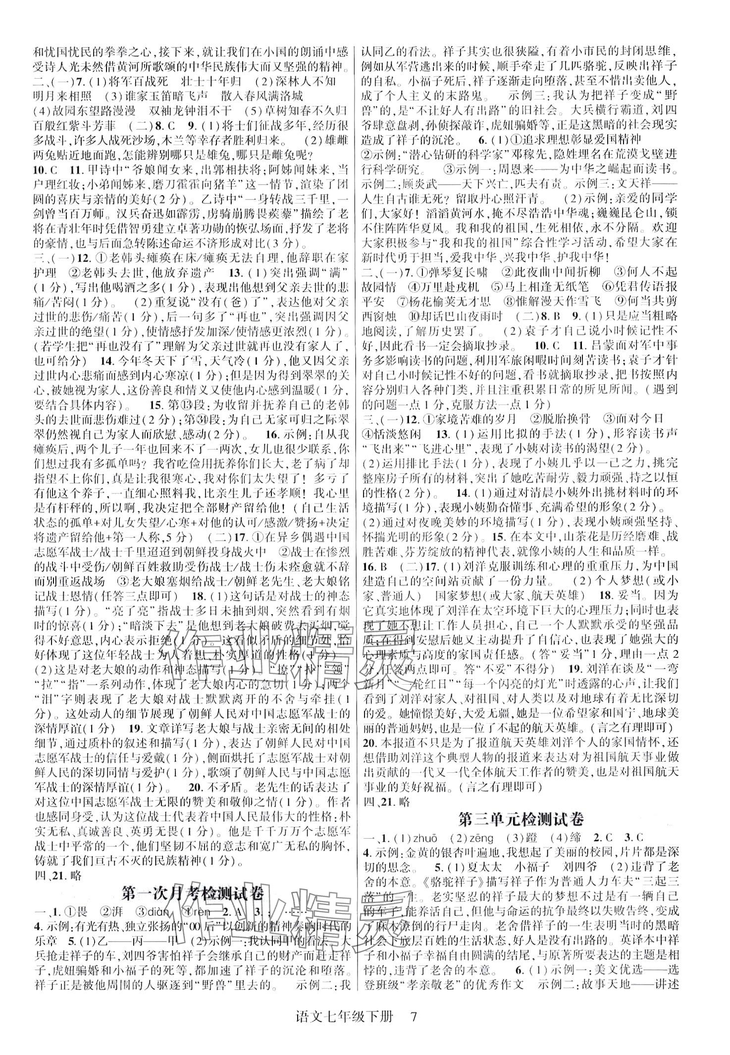 2024年巴蜀密卷状元1卷通七年级语文下册人教版重庆专版