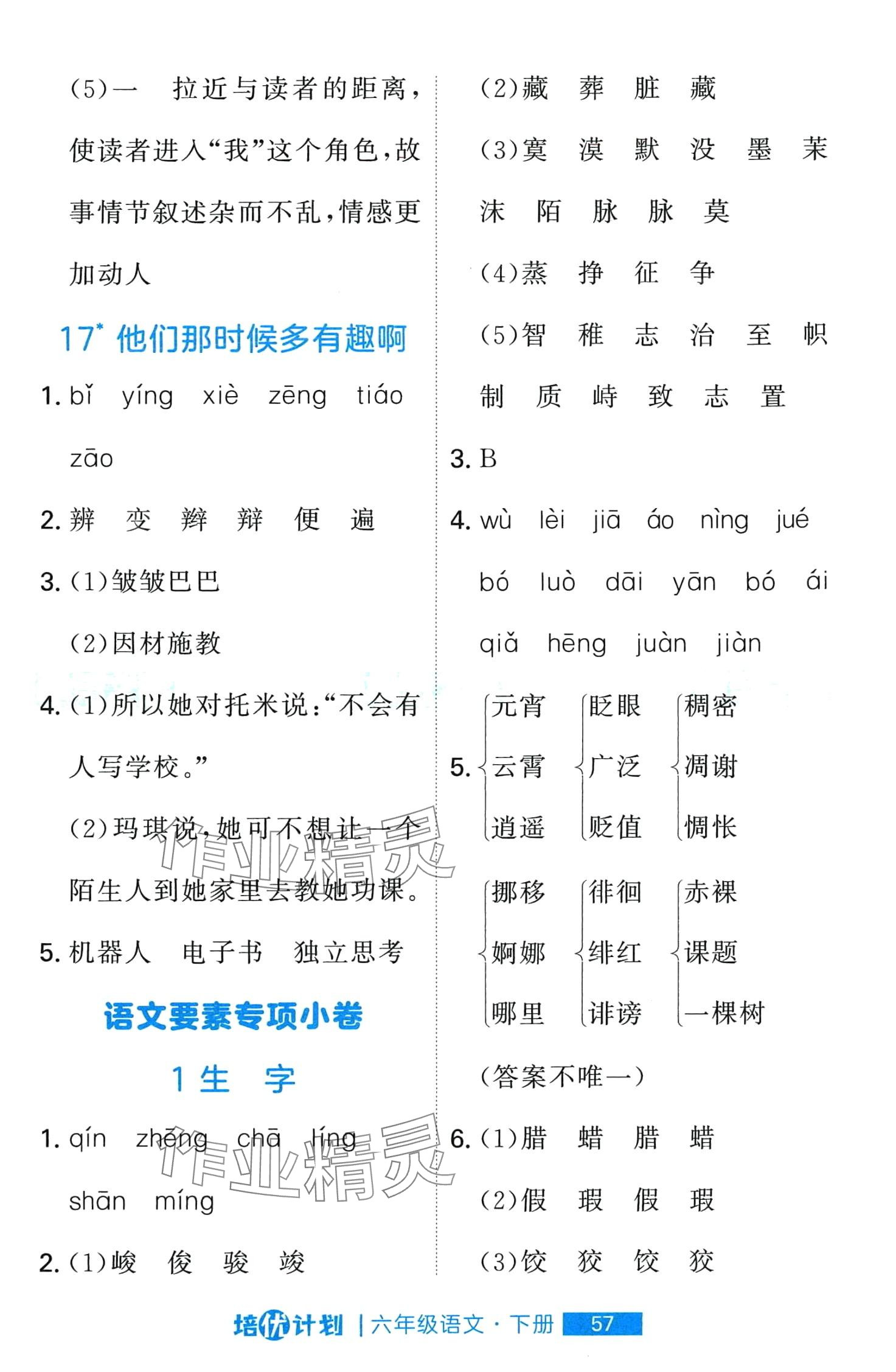 注:目前有些书本章节名称可能整理的还不是很完善,但都是按照顺序排列的,请同学们按照顺序仔细查找。练习册 2024年培优计划延边大学出版社六年级语文下册人教版 答案主要是用来给同学们做完题方便对答案用的,请勿直接抄袭。