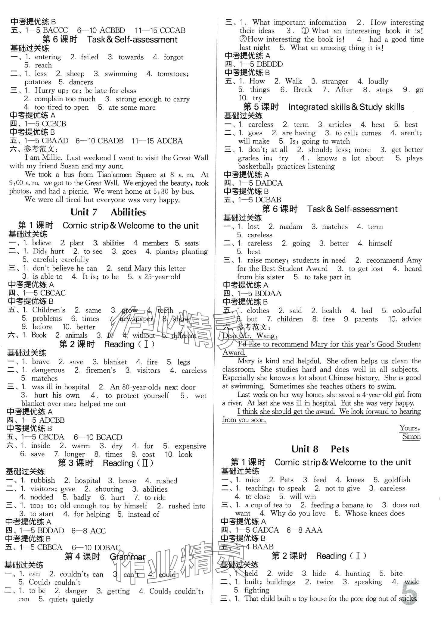 注:目前有些书本章节名称可能整理的还不是很完善,但都是按照顺序排列的,请同学们按照顺序仔细查找。练习册 2024年金3练七年级英语下册译林版 答案主要是用来给同学们做完题方便对答案用的,请勿直接抄袭。