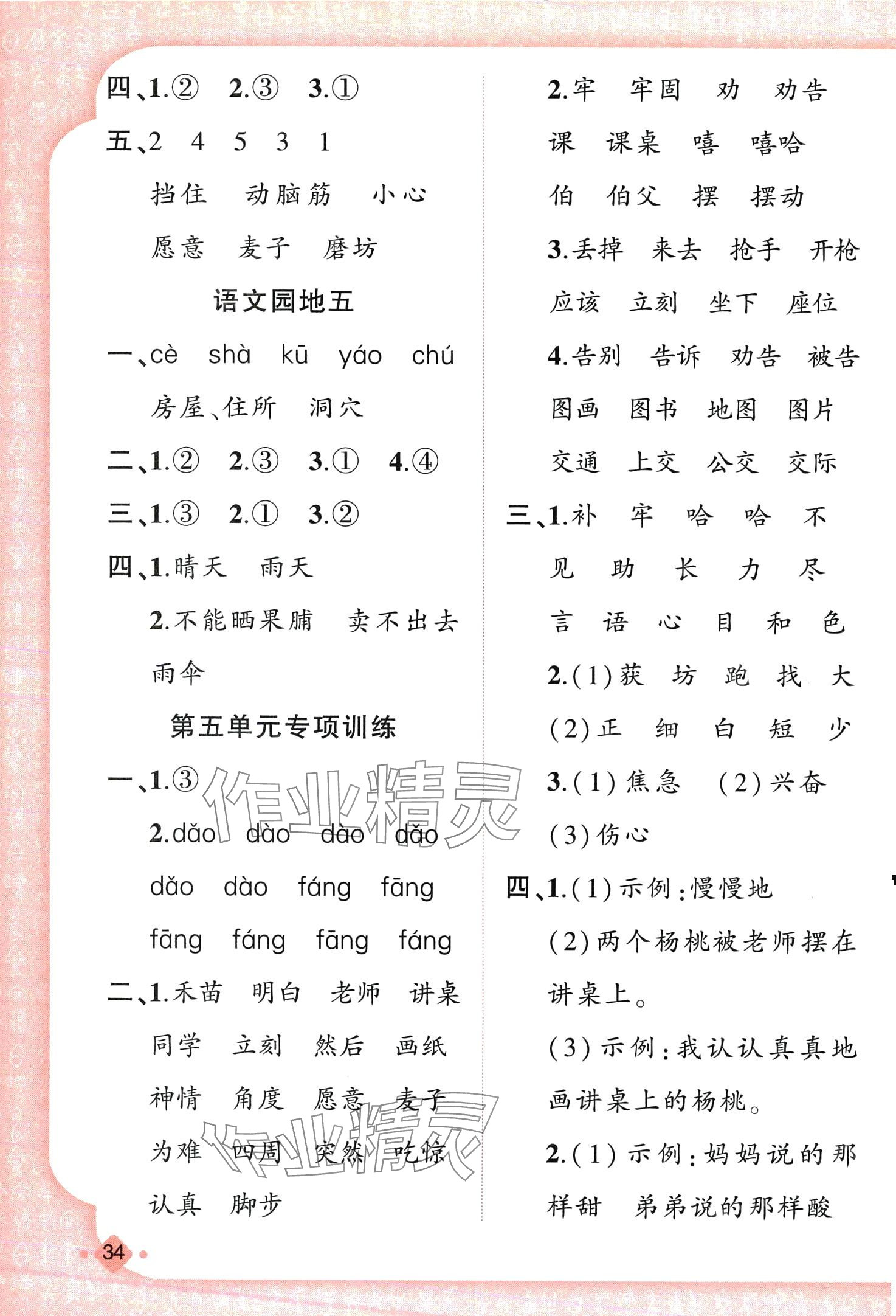 注:目前有些书本章节名称可能整理的还不是很完善,但都是按照顺序排列的,请同学们按照顺序仔细查找。练习册 2024年黄冈金牌之路练闯考二年级语文下册人教版 答案主要是用来给同学们做完题方便对答案用的,请勿直接抄袭。