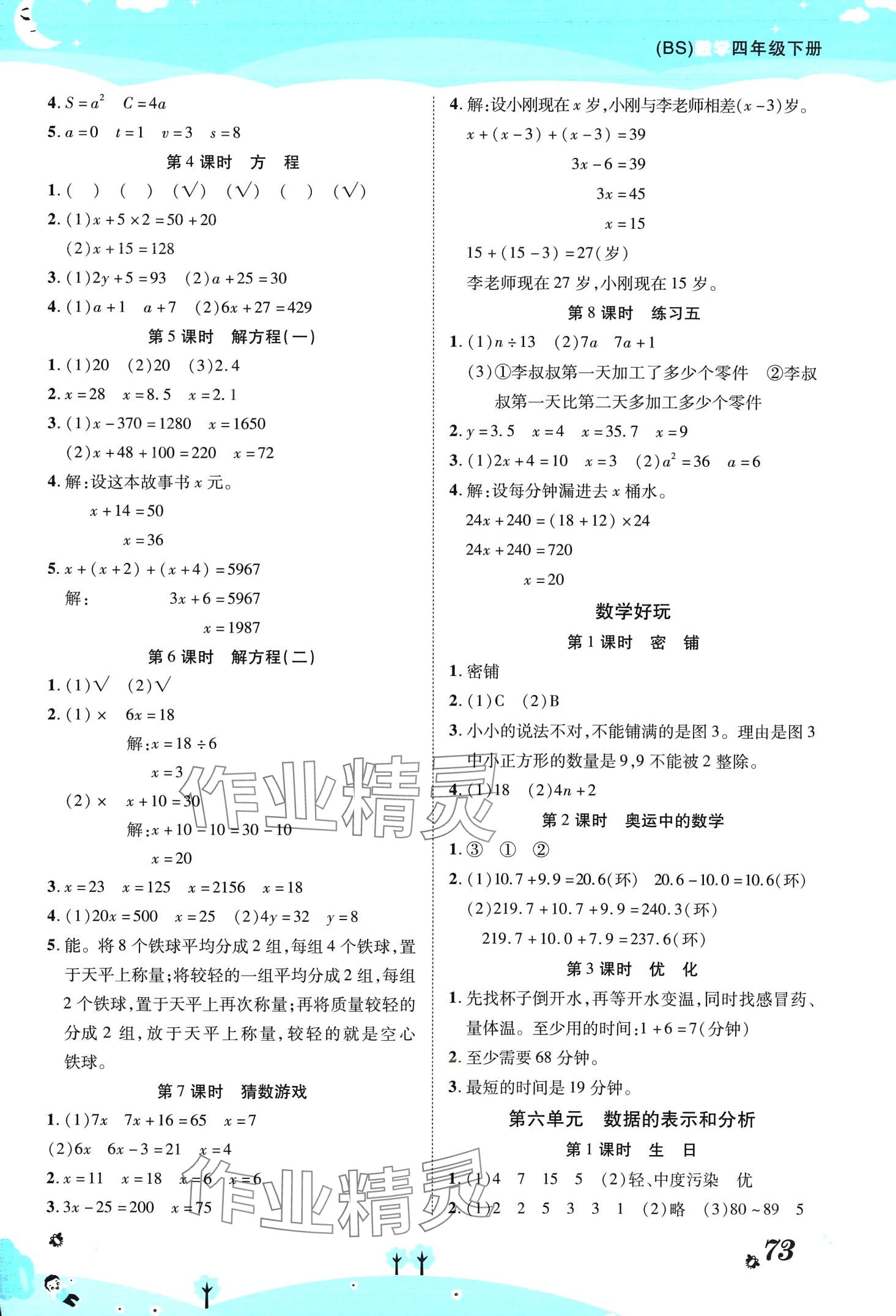 注:目前有些书本章节名称可能整理的还不是很完善,但都是按照顺序排列的,请同学们按照顺序仔细查找。练习册 2024年黄冈课课练四年级数学下册北师大版 答案主要是用来给同学们做完题方便对答案用的,请勿直接抄袭。