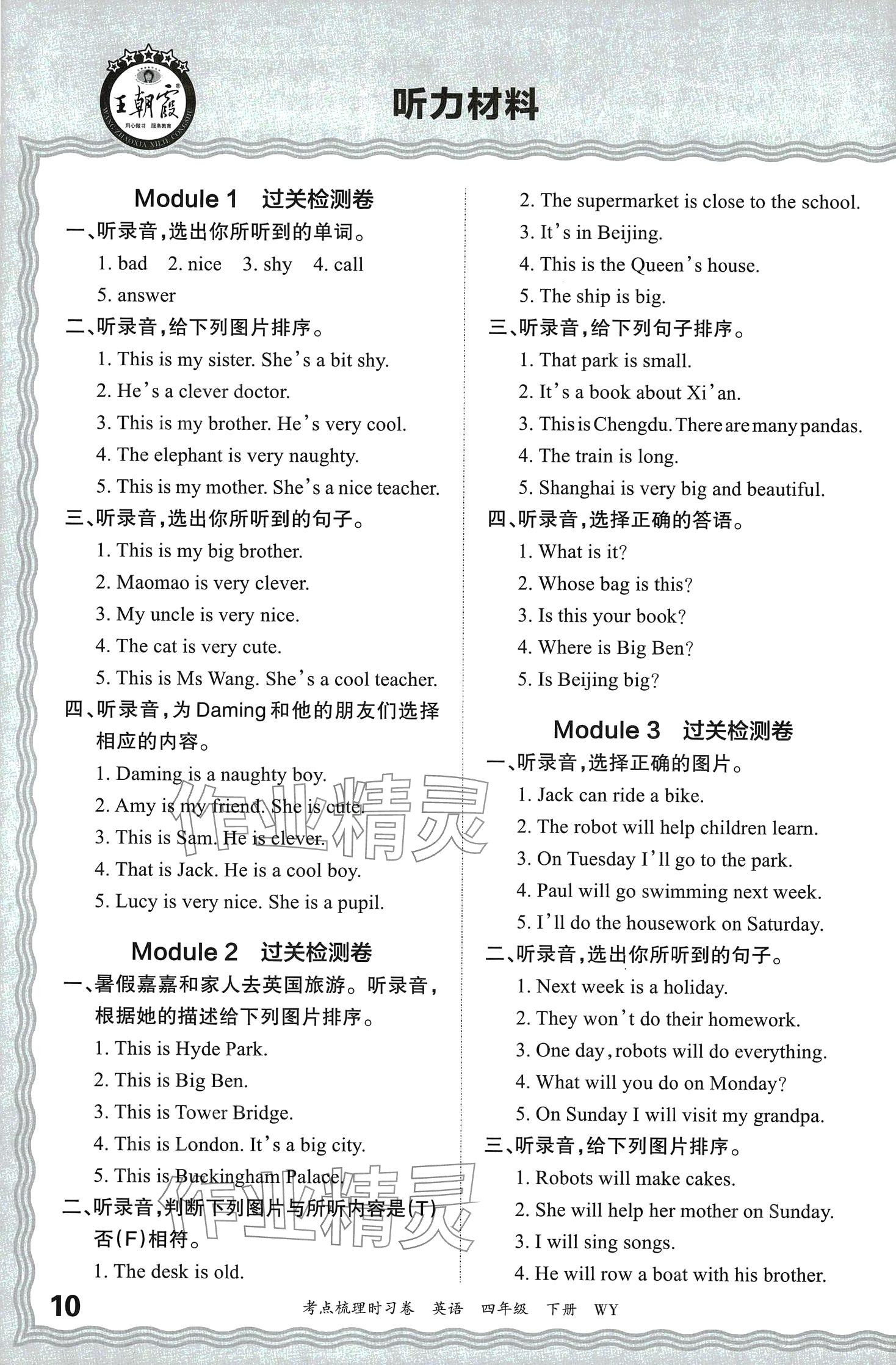 2024年王朝霞考点梳理时习卷四年级英语下册外研版