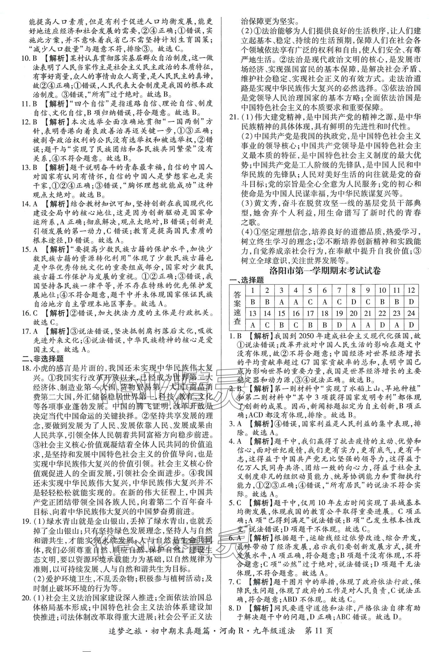 2024年追梦之旅初中期末真题篇九年级道德与法治全一册人教版河南专版