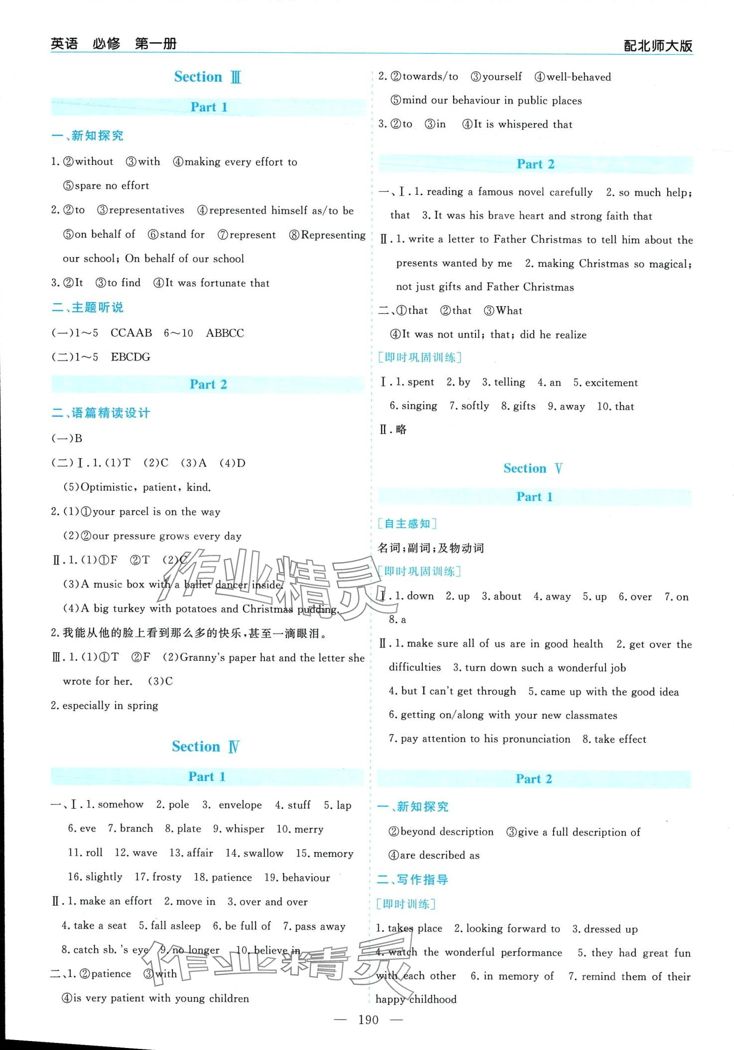 注:目前有些书本章节名称可能整理的还不是很完善,但都是按照顺序排列的,请同学们按照顺序仔细查找。练习册 2024年新课程学习指导高中英语必修第一册北师大版 答案主要是用来给同学们做完题方便对答案用的,请勿直接抄袭。