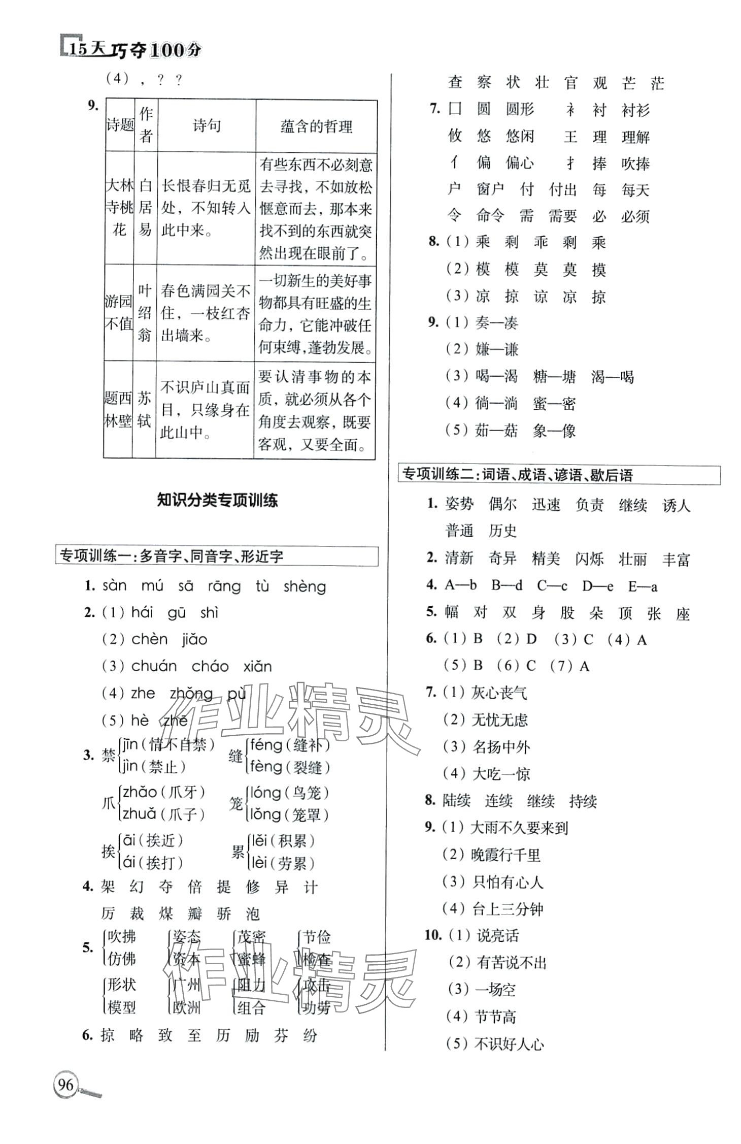 注:目前有些书本章节名称可能整理的还不是很完善,但都是按照顺序排列的,请同学们按照顺序仔细查找。练习册 2024年15天巧夺100分三年级语文下册人教版 答案主要是用来给同学们做完题方便对答案用的,请勿直接抄袭。