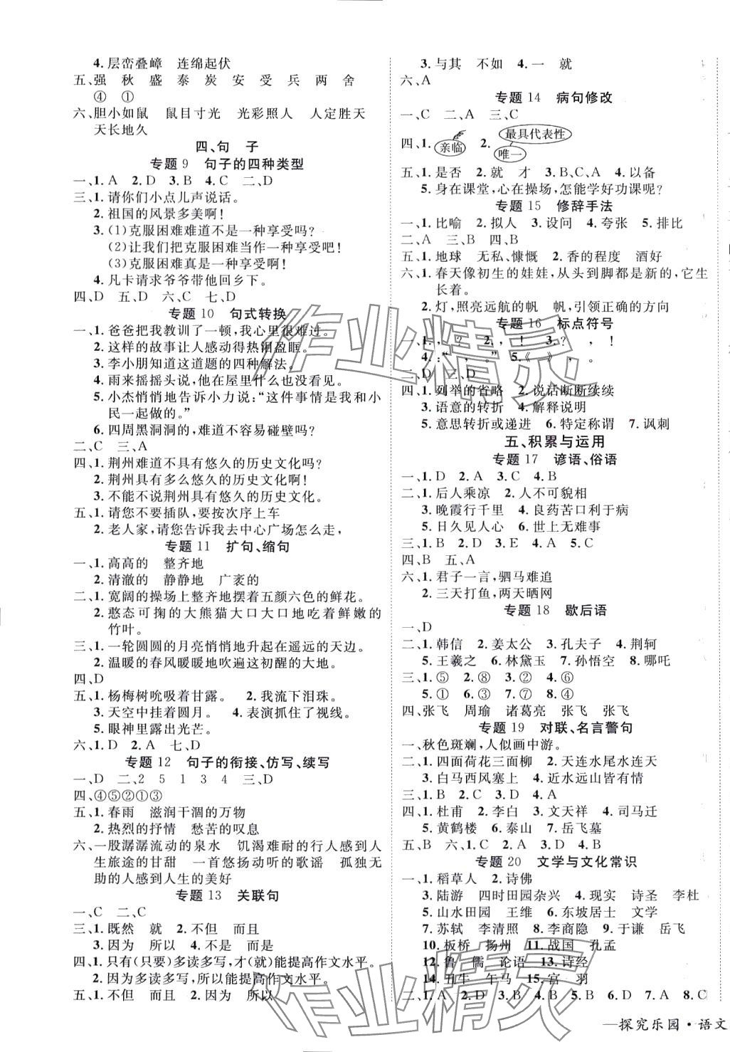 注:目前有些书本章节名称可能整理的还不是很完善,但都是按照顺序排列的,请同学们按照顺序仔细查找。练习册 2024年探究乐园高效课堂小升初总复习语文 答案主要是用来给同学们做完题方便对答案用的,请勿直接抄袭。