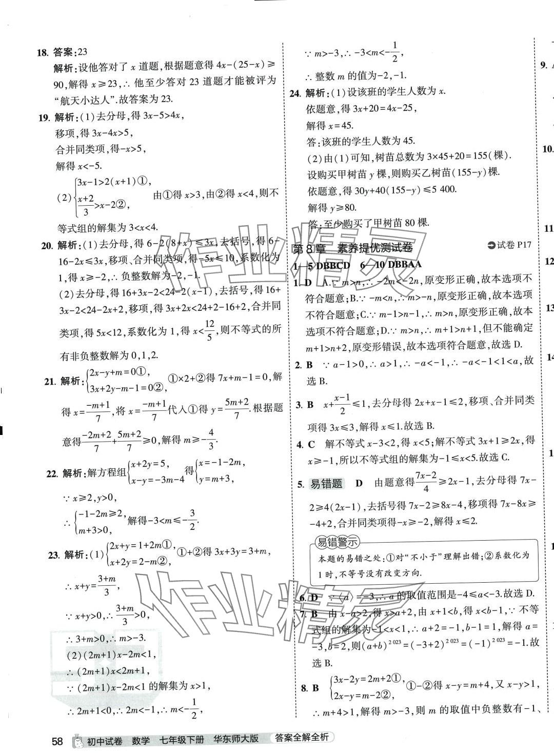 注:目前有些书本章节名称可能整理的还不是很完善,但都是按照顺序排列的,请同学们按照顺序仔细查找。练习册 2024年5年中考3年模拟初中试卷七年级数学下册华师大版 答案主要是用来给同学们做完题方便对答案用的,请勿直接抄袭。