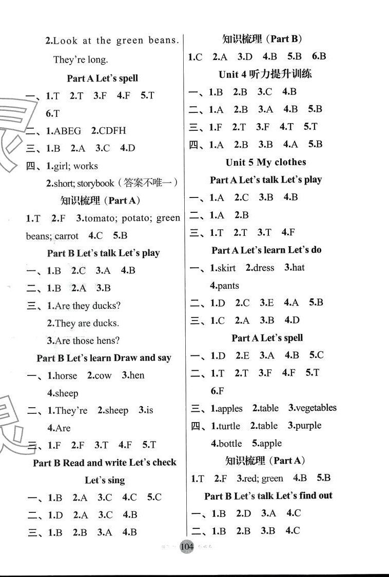注:目前有些书本章节名称可能整理的还不是很完善,但都是按照顺序排列的,请同学们按照顺序仔细查找。练习册 2024年黄冈100分闯关四年级英语下册人教版 答案主要是用来给同学们做完题方便对答案用的,请勿直接抄袭。