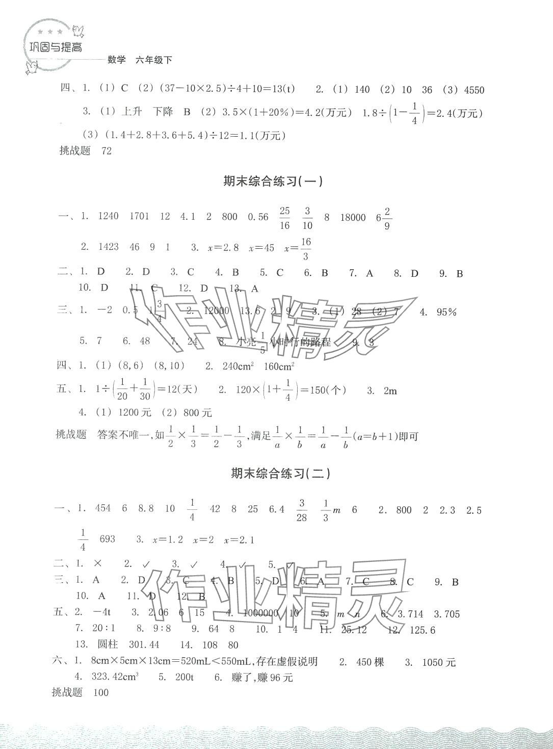 2024年巩固与提高浙江教育出版社六年级数学下册人教版