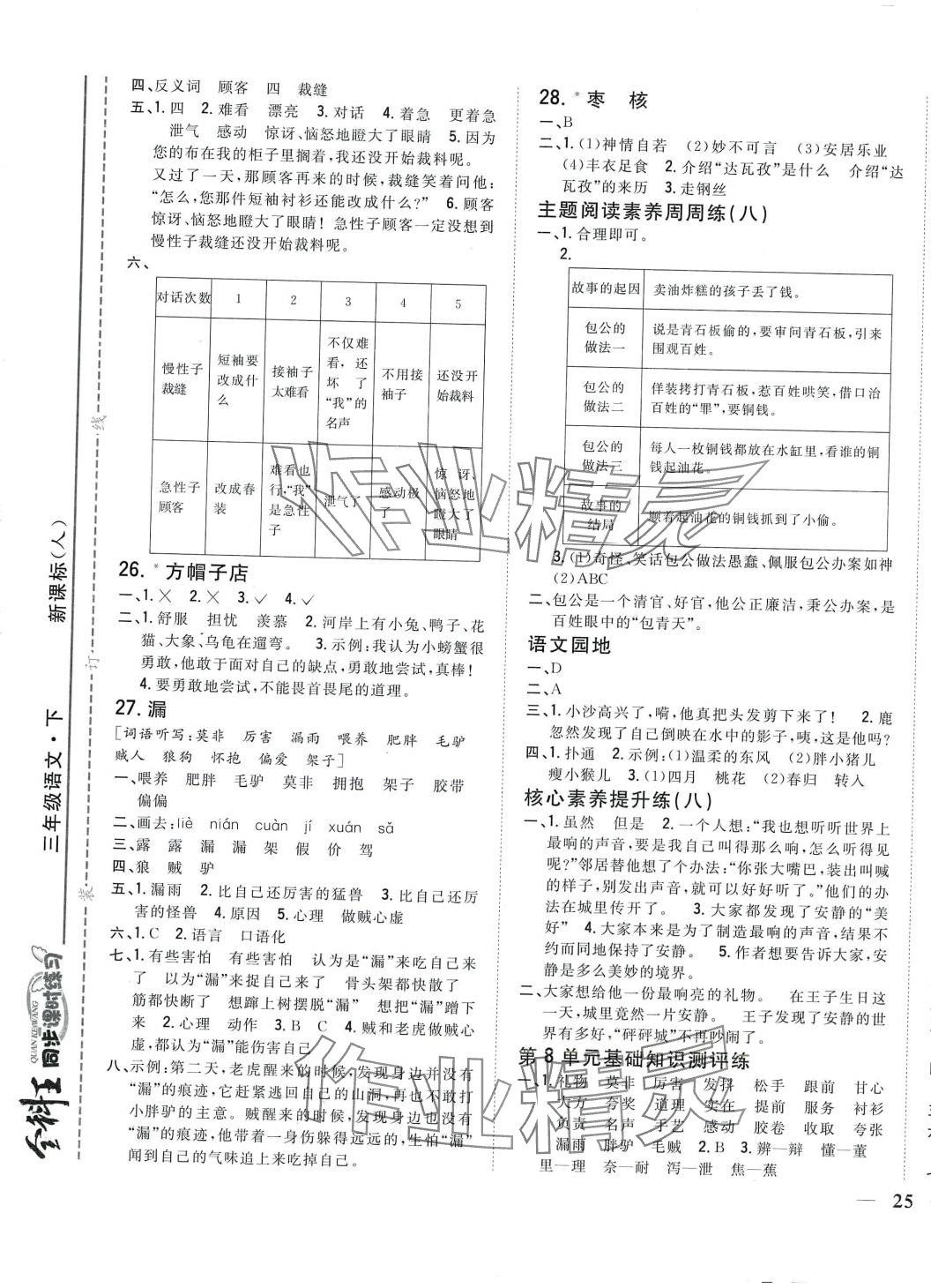 注:目前有些书本章节名称可能整理的还不是很完善,但都是按照顺序排列的,请同学们按照顺序仔细查找。练习册 2024年全科王同步课时练习三年级语文下册人教版 答案主要是用来给同学们做完题方便对答案用的,请勿直接抄袭。