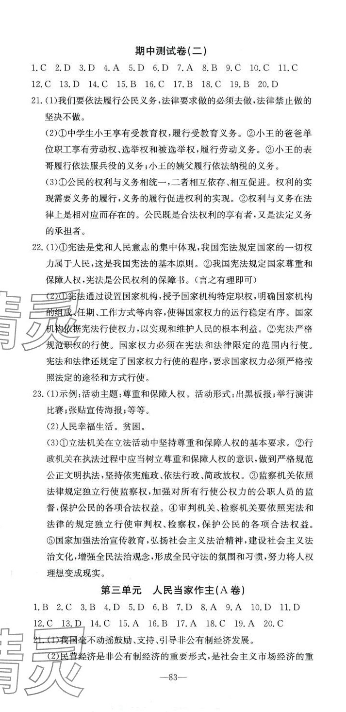注:目前有些书本章节名称可能整理的还不是很完善,但都是按照顺序排列的,请同学们按照顺序仔细查找。练习册 2024年精彩考评单元测评卷八年级道德与法治下册人教版 答案主要是用来给同学们做完题方便对答案用的,请勿直接抄袭。