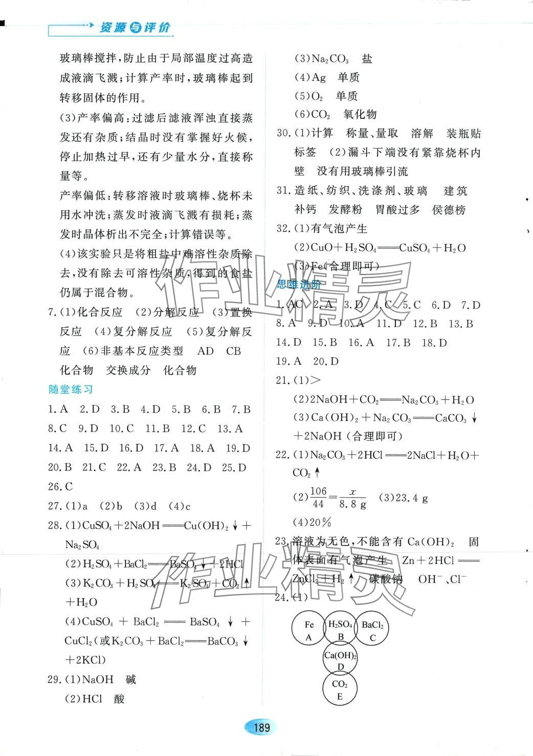 注:目前有些书本章节名称可能整理的还不是很完善,但都是按照顺序排列的,请同学们按照顺序仔细查找。练习册 2024年资源与评价黑龙江教育出版社九年级化学下册人教版 答案主要是用来给同学们做完题方便对答案用的,请勿直接抄袭。