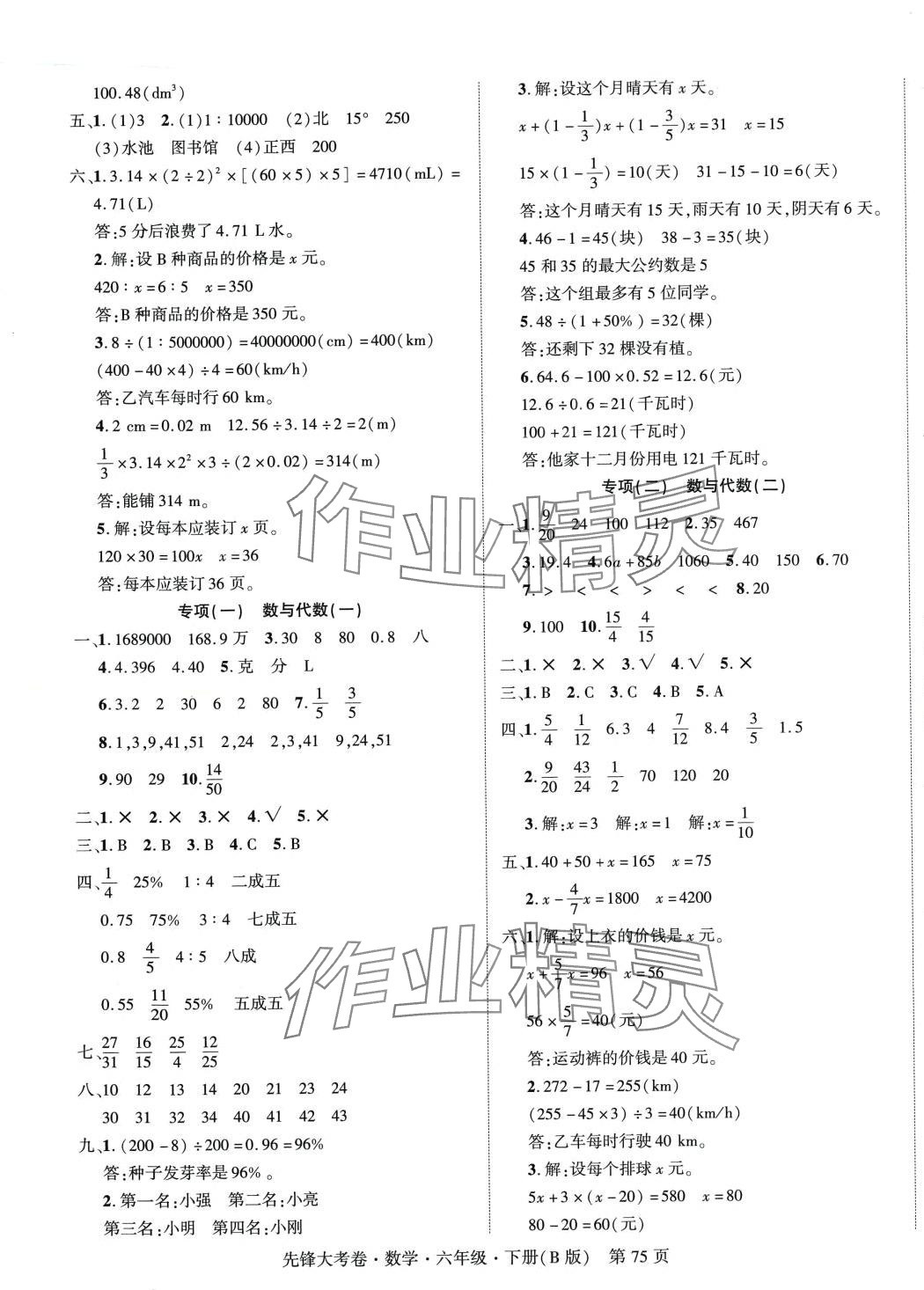 注:目前有些书本章节名称可能整理的还不是很完善,但都是按照顺序排列的,请同学们按照顺序仔细查找。练习册 2024年单元加期末复习先锋大考卷六年级数学下册北师大版 答案主要是用来给同学们做完题方便对答案用的,请勿直接抄袭。