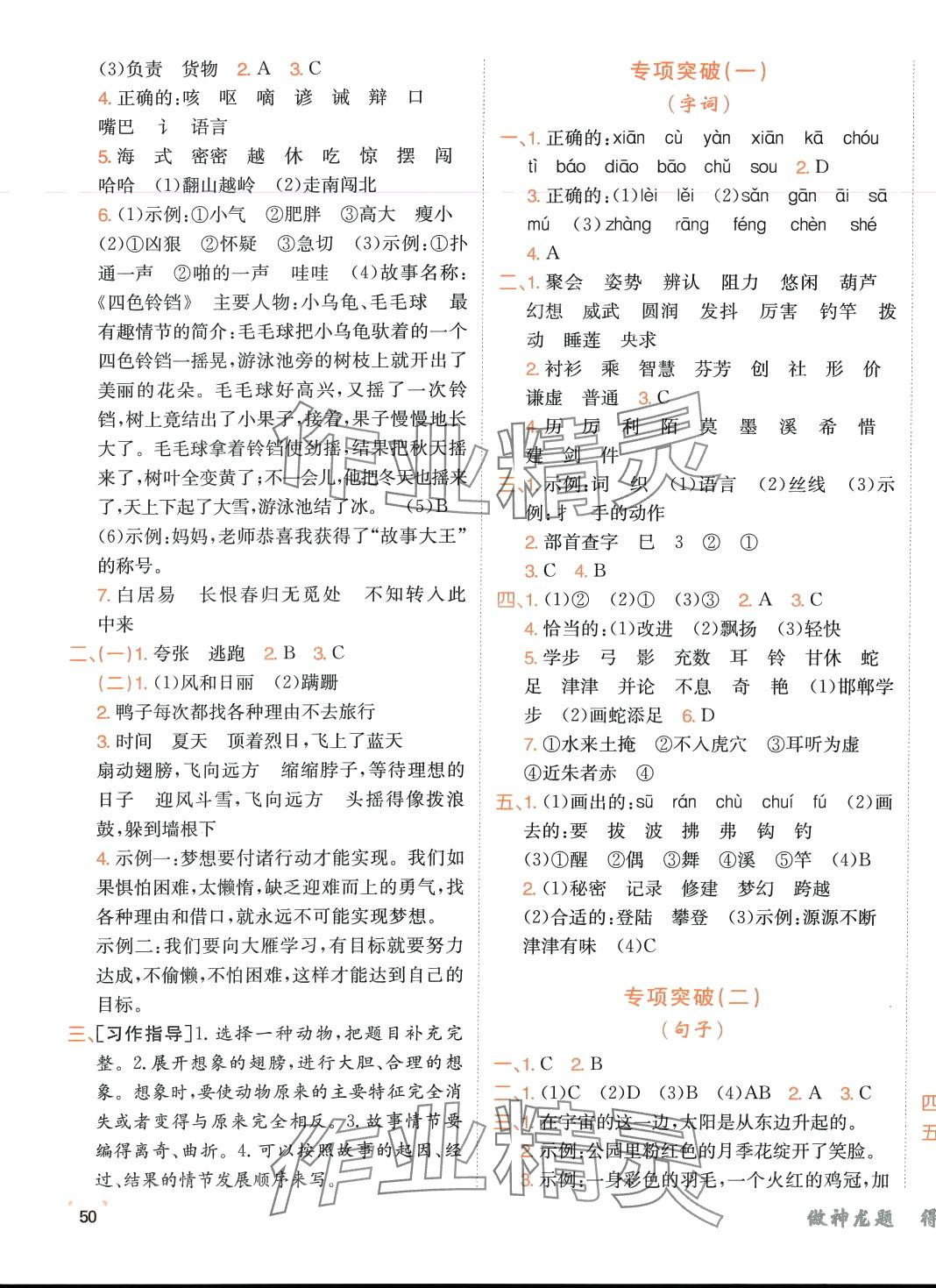 注:目前有些书本章节名称可能整理的还不是很完善,但都是按照顺序排列的,请同学们按照顺序仔细查找。练习册 2024年神龙牛皮卷海淀考王三年级语文下册人教版 答案主要是用来给同学们做完题方便对答案用的,请勿直接抄袭。