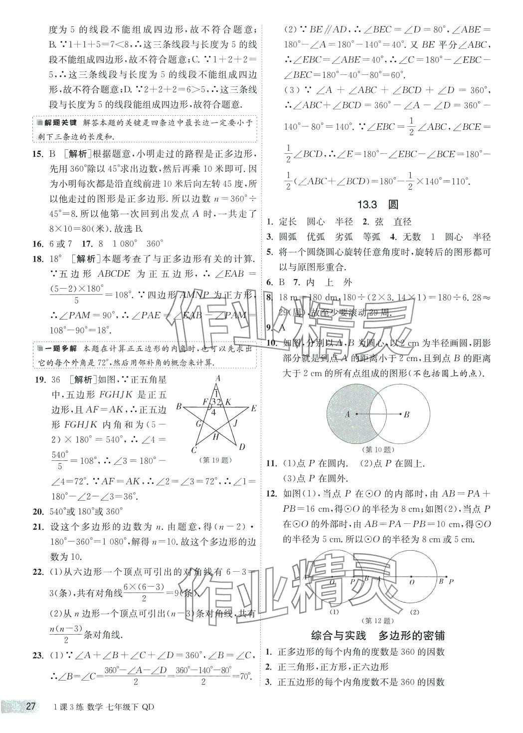 注:目前有些书本章节名称可能整理的还不是很完善,但都是按照顺序排列的,请同学们按照顺序仔细查找。练习册 2024年1课3练江苏人民出版社七年级数学下册青岛版 答案主要是用来给同学们做完题方便对答案用的,请勿直接抄袭。