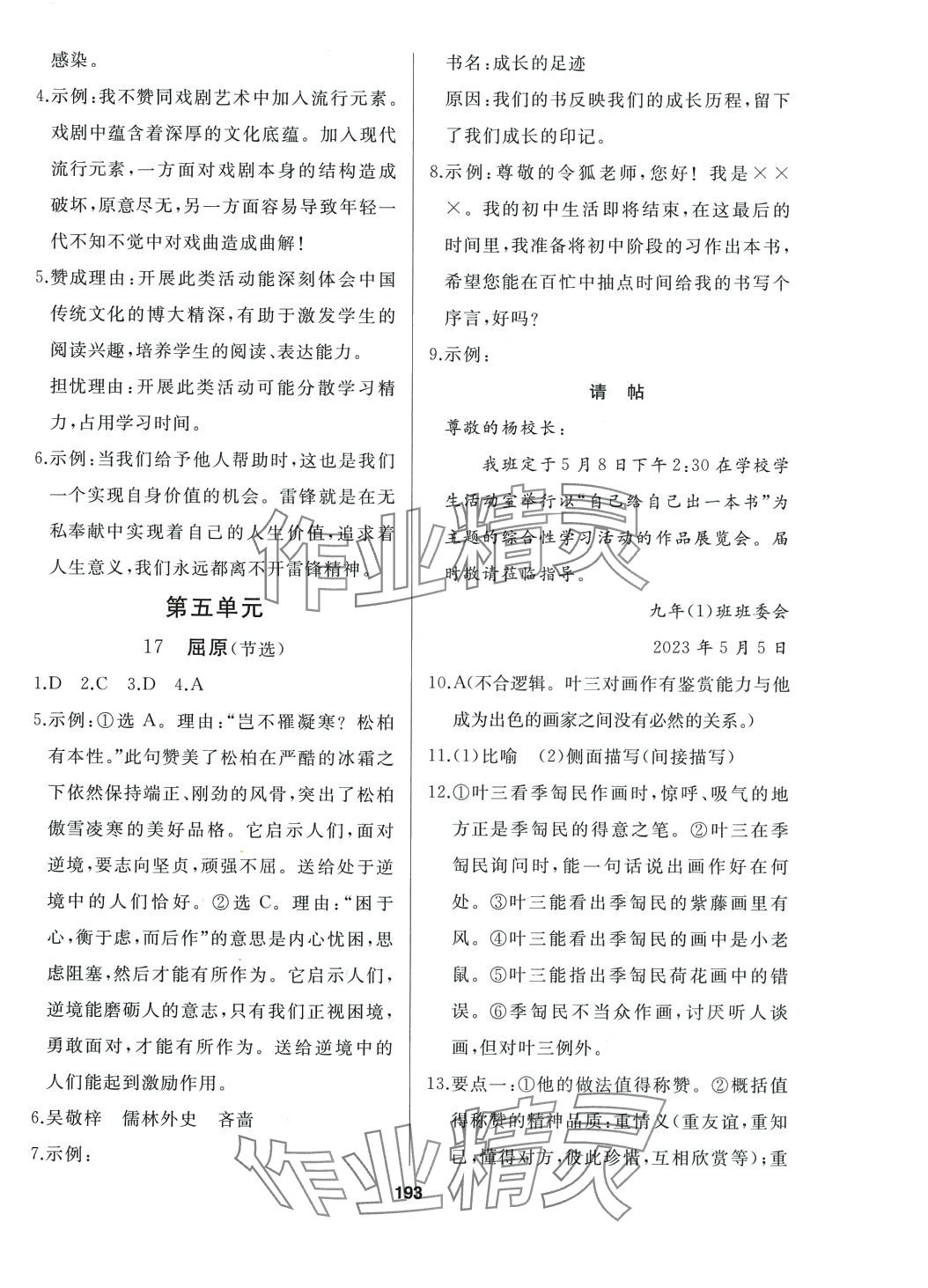注:目前有些书本章节名称可能整理的还不是很完善,但都是按照顺序排列的,请同学们按照顺序仔细查找。练习册 2024年试题优化课堂同步九年级语文下册人教版 答案主要是用来给同学们做完题方便对答案用的,请勿直接抄袭。