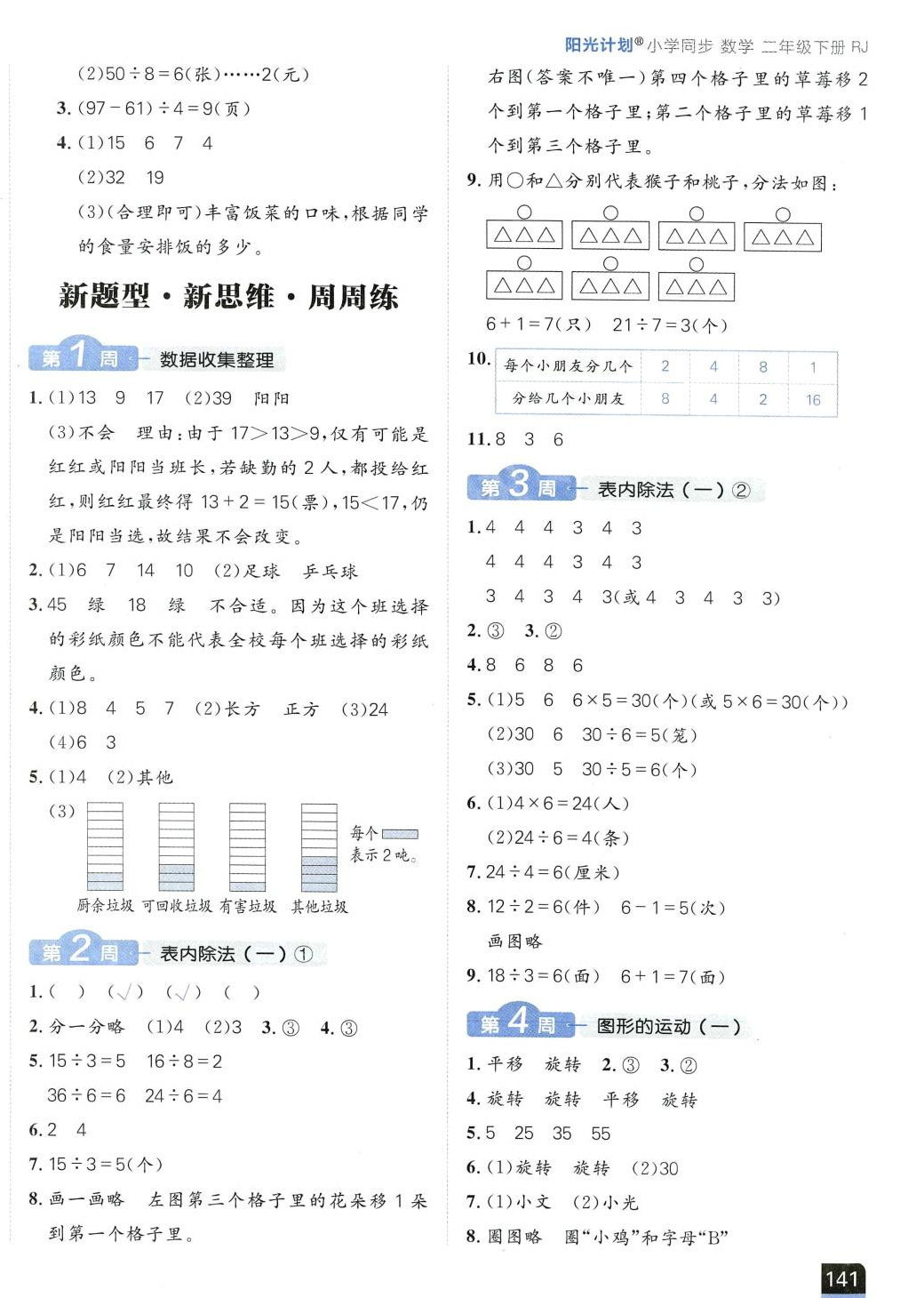注:目前有些书本章节名称可能整理的还不是很完善,但都是按照顺序排列的,请同学们按照顺序仔细查找。练习册 2024年阳光计划小学同步二年级数学下册人教版 答案主要是用来给同学们做完题方便对答案用的,请勿直接抄袭。