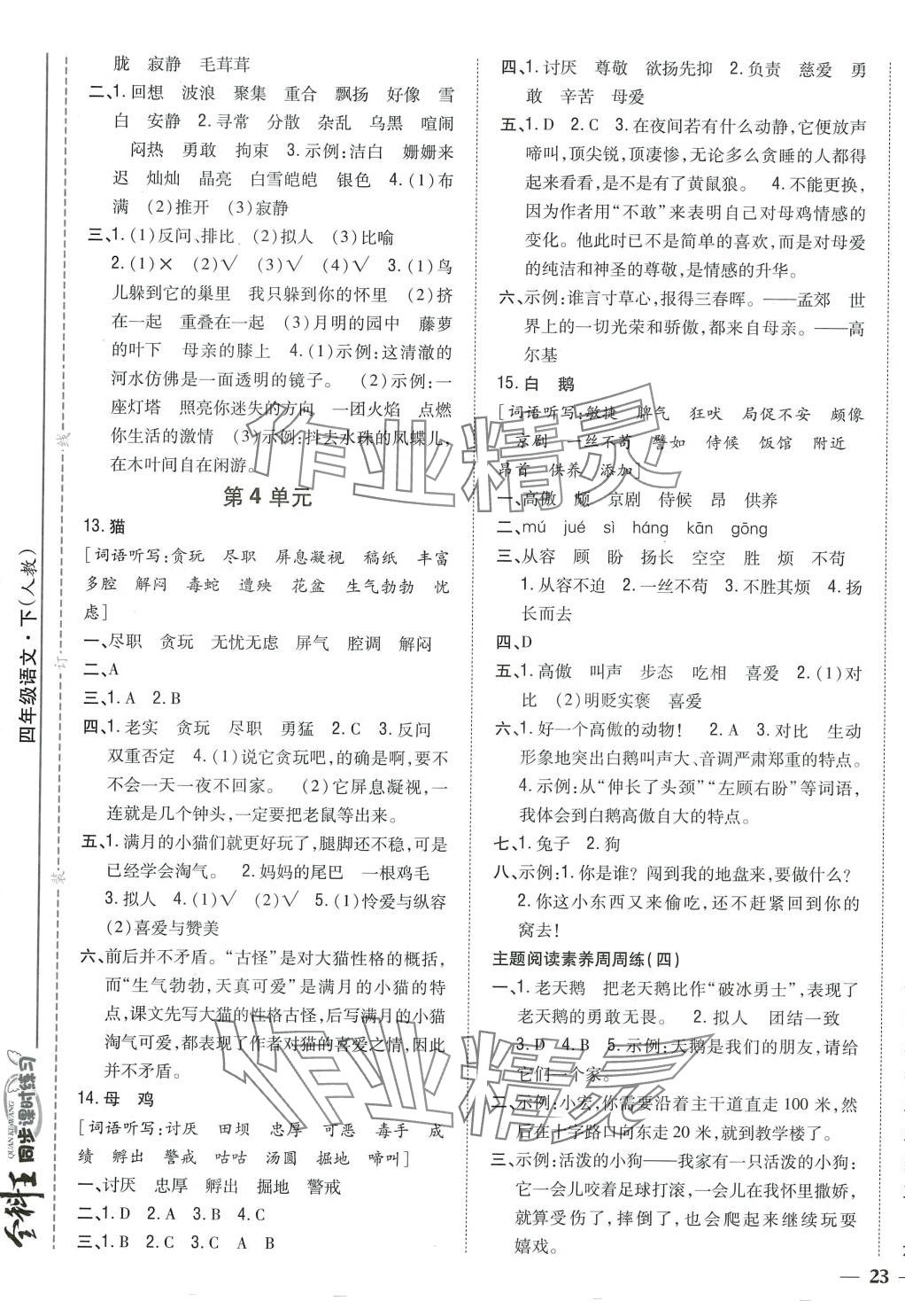 注:目前有些书本章节名称可能整理的还不是很完善,但都是按照顺序排列的,请同学们按照顺序仔细查找。练习册 2024年全科王同步课时练习四年级语文下册人教版 答案主要是用来给同学们做完题方便对答案用的,请勿直接抄袭。
