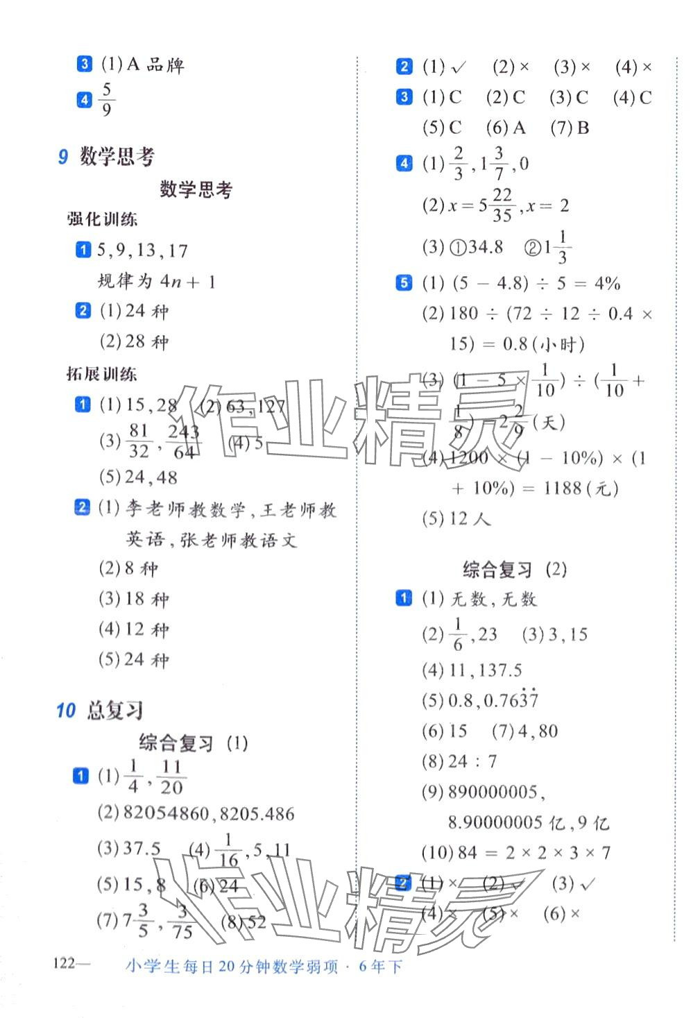 注:目前有些书本章节名称可能整理的还不是很完善,但都是按照顺序排列的,请同学们按照顺序仔细查找。练习册 2024年小学生每日20分钟六年级数学下册人教版 答案主要是用来给同学们做完题方便对答案用的,请勿直接抄袭。