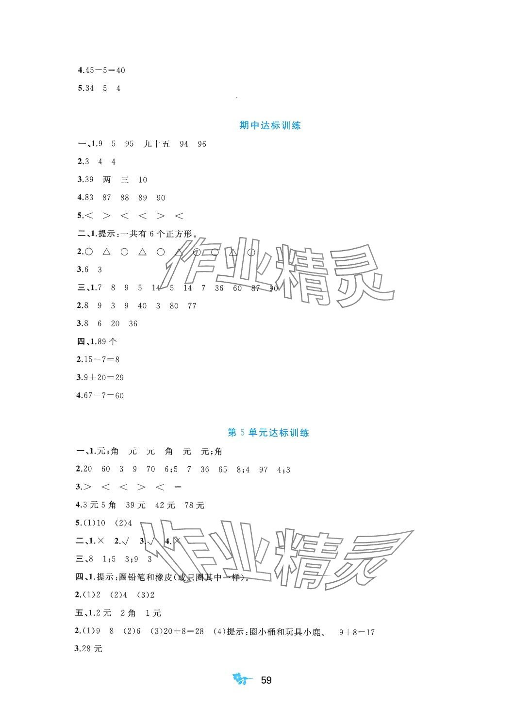 注:目前有些书本章节名称可能整理的还不是很完善,但都是按照顺序排列的,请同学们按照顺序仔细查找。练习册 2024年新课程学习与测评单元双测一年级数学下册人教版A版 答案主要是用来给同学们做完题方便对答案用的,请勿直接抄袭。