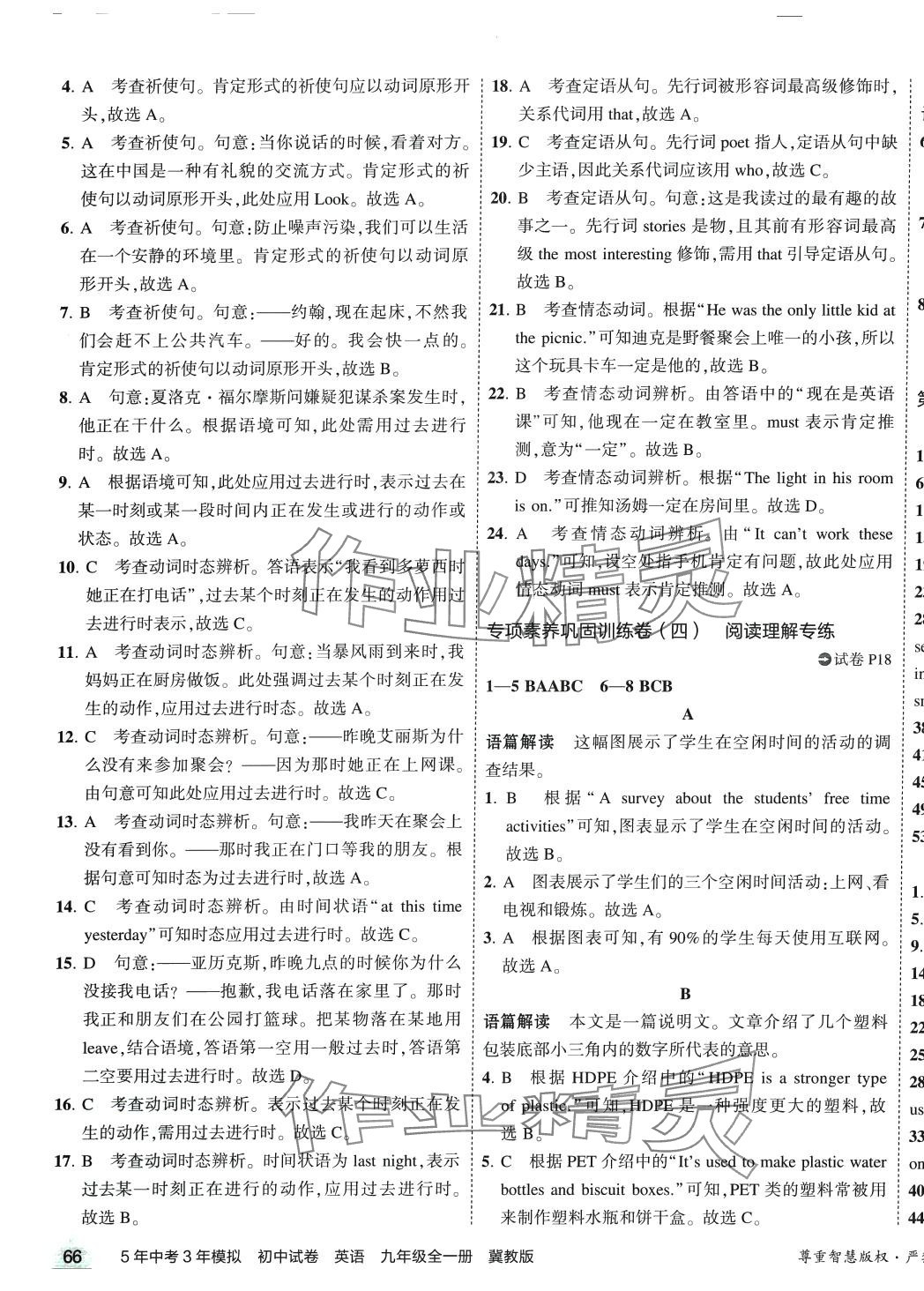 注:目前有些书本章节名称可能整理的还不是很完善,但都是按照顺序排列的,请同学们按照顺序仔细查找。练习册 2024年5年中考3年模拟初中试卷九年级英语全一册冀教版 答案主要是用来给同学们做完题方便对答案用的,请勿直接抄袭。