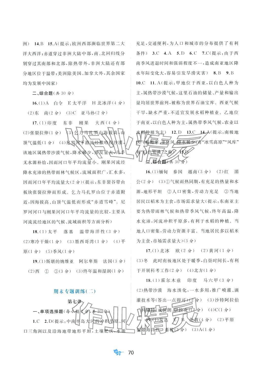 注:目前有些书本章节名称可能整理的还不是很完善,但都是按照顺序排列的,请同学们按照顺序仔细查找。练习册 2024年新课程学习与测评单元双测七年级地理下册湘教版B版 答案主要是用来给同学们做完题方便对答案用的,请勿直接抄袭。