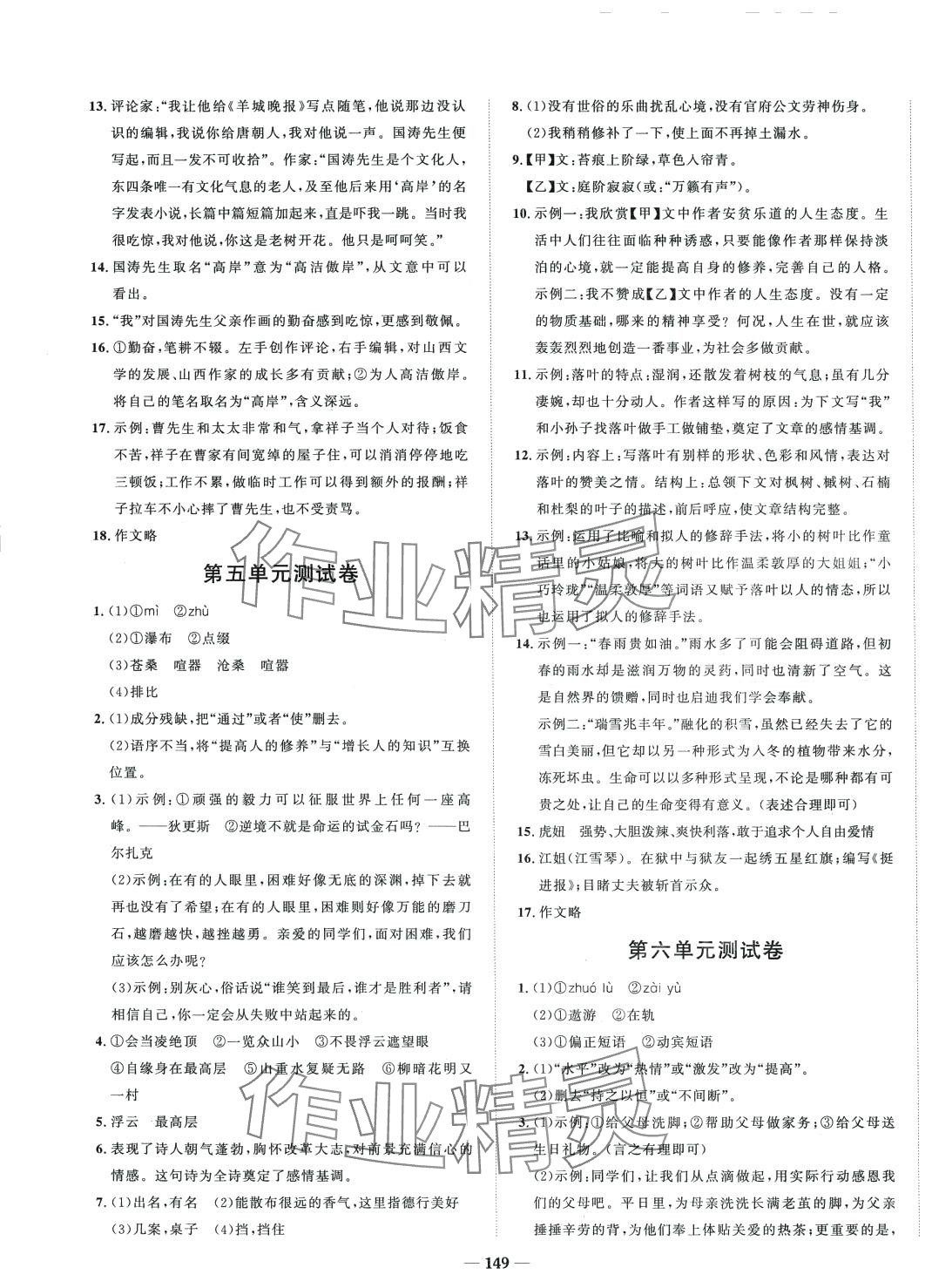 注:目前有些书本章节名称可能整理的还不是很完善,但都是按照顺序排列的,请同学们按照顺序仔细查找。练习册 2024年天成导学金典同步练七年级语文下册人教版 答案主要是用来给同学们做完题方便对答案用的,请勿直接抄袭。