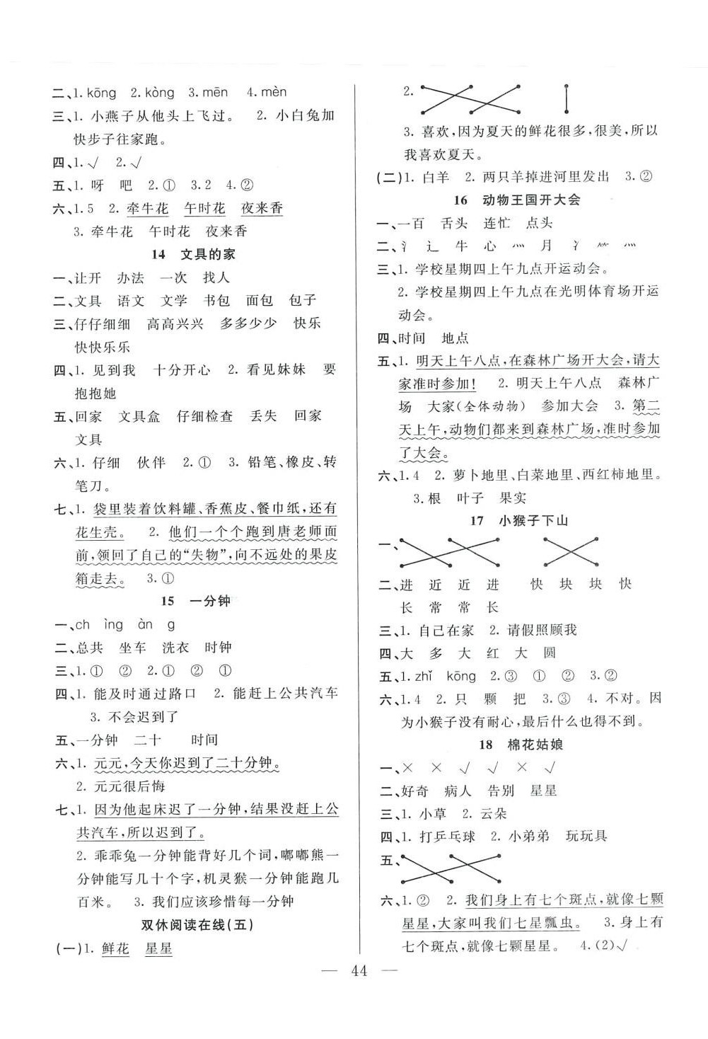 注:目前有些书本章节名称可能整理的还不是很完善,但都是按照顺序排列的,请同学们按照顺序仔细查找。练习册 2024年优等生全优计划一年级语文下册人教版 答案主要是用来给同学们做完题方便对答案用的,请勿直接抄袭。