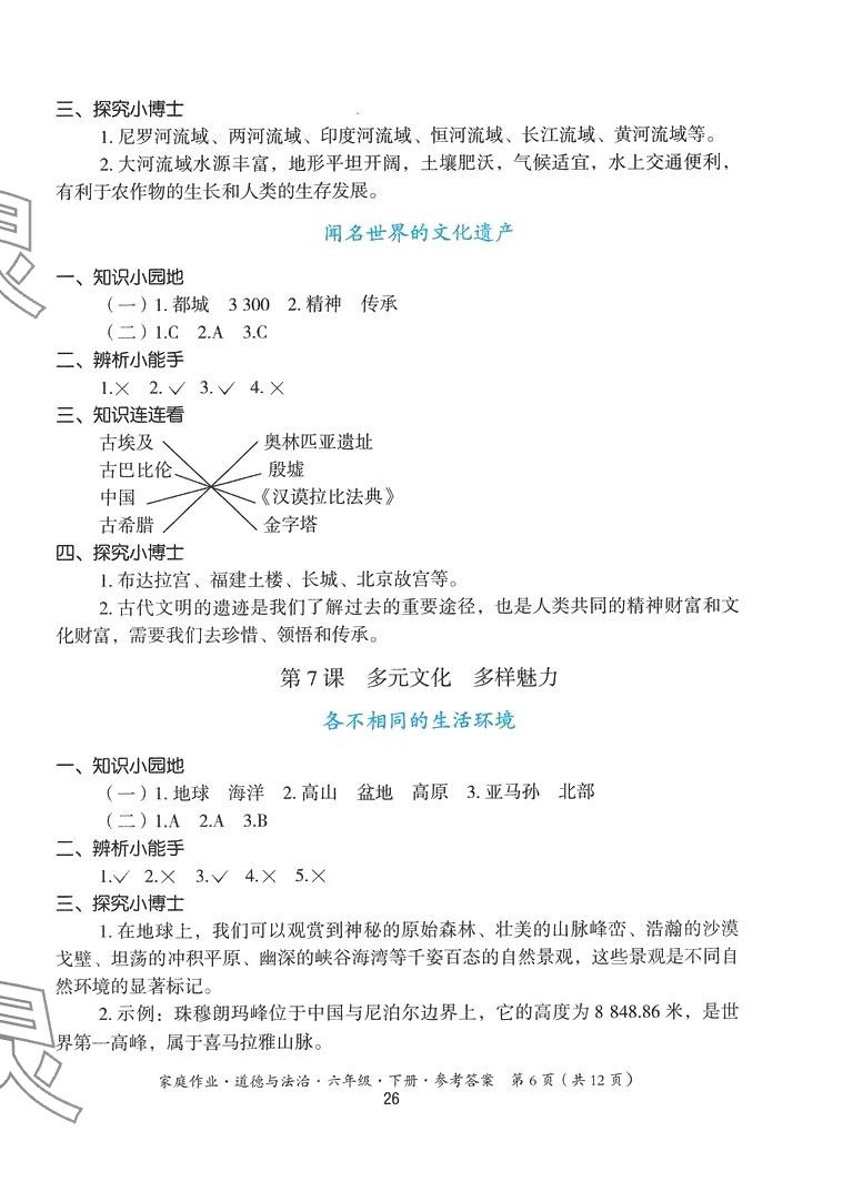 注:目前有些书本章节名称可能整理的还不是很完善,但都是按照顺序排列的,请同学们按照顺序仔细查找。练习册 2024年家庭作业六年级道德与法治下册人教版 答案主要是用来给同学们做完题方便对答案用的,请勿直接抄袭。