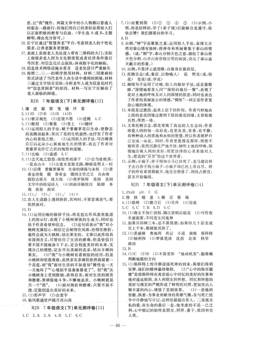 注:目前有些书本章节名称可能整理的还不是很完善,但都是按照顺序排列的,请同学们按照顺序仔细查找。练习册 2024年精彩考评单元测评卷七年级语文下册人教版 答案主要是用来给同学们做完题方便对答案用的,请勿直接抄袭。