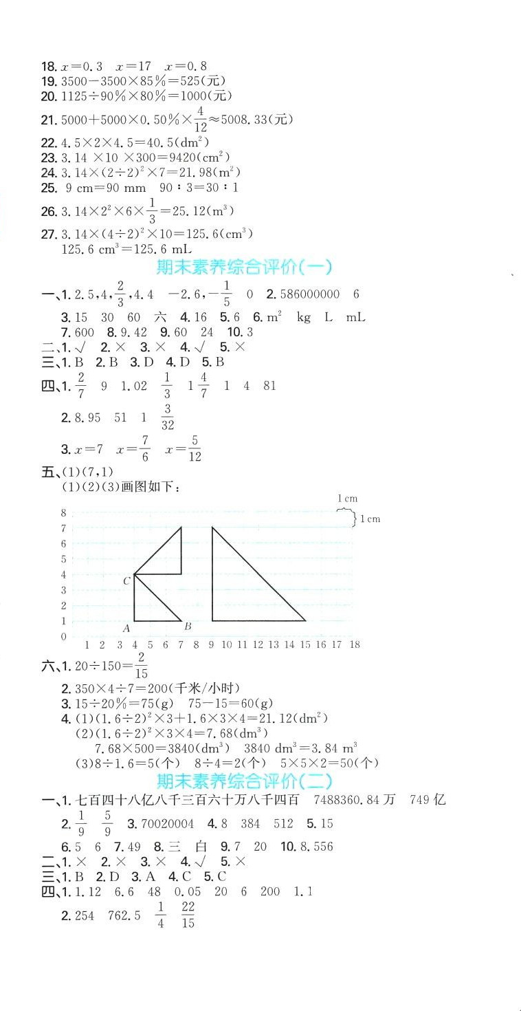 注:目前有些书本章节名称可能整理的还不是很完善,但都是按照顺序排列的,请同学们按照顺序仔细查找。练习册 2024年萌翔黄冈单元期末冲刺100分六年级数学下册人教版 答案主要是用来给同学们做完题方便对答案用的,请勿直接抄袭。