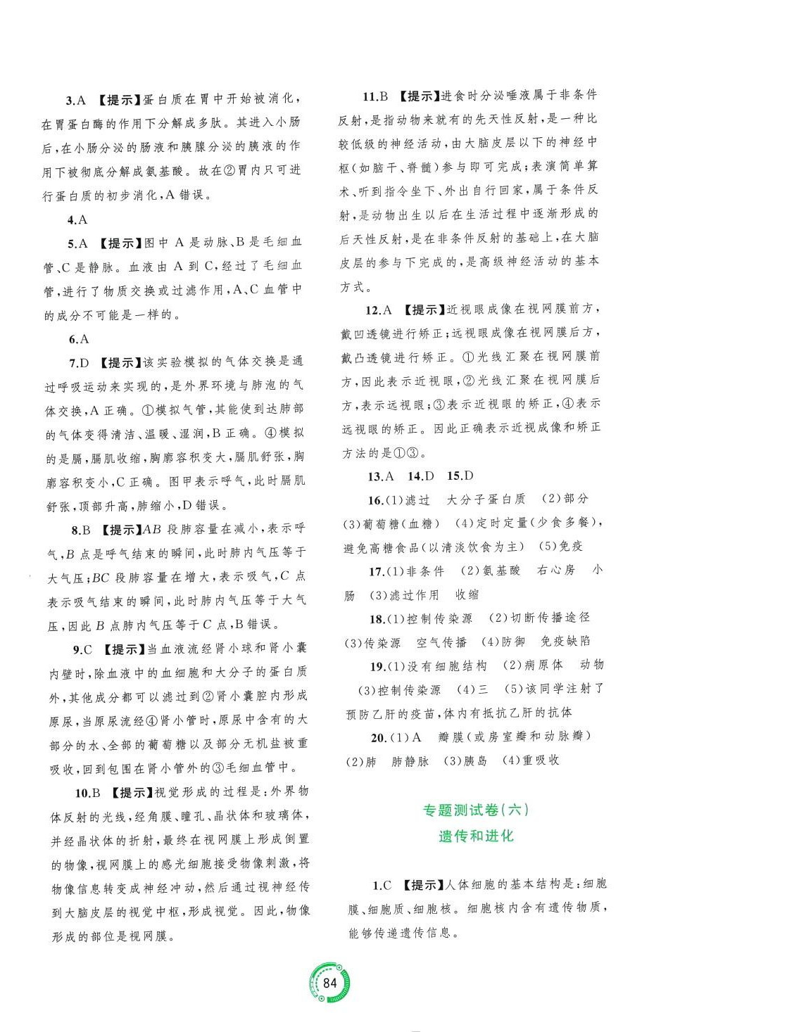 注:目前有些书本章节名称可能整理的还不是很完善,但都是按照顺序排列的,请同学们按照顺序仔细查找。练习册 2024年中考先锋中考总复习配套测试卷生物中考B 答案主要是用来给同学们做完题方便对答案用的,请勿直接抄袭。