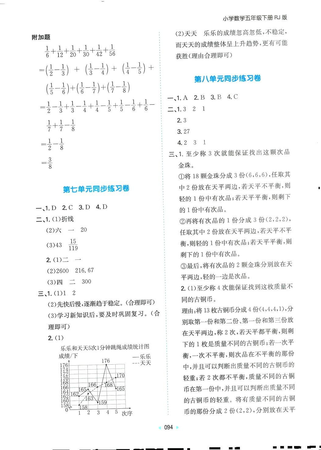 注:目前有些书本章节名称可能整理的还不是很完善,但都是按照顺序排列的,请同学们按照顺序仔细查找。练习册 2024年一本同步培优新卷五年级数学下册人教版 答案主要是用来给同学们做完题方便对答案用的,请勿直接抄袭。