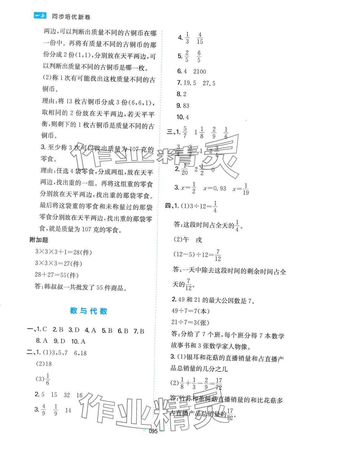 注:目前有些书本章节名称可能整理的还不是很完善,但都是按照顺序排列的,请同学们按照顺序仔细查找。练习册 2024年一本同步培优新卷五年级数学下册人教版 答案主要是用来给同学们做完题方便对答案用的,请勿直接抄袭。