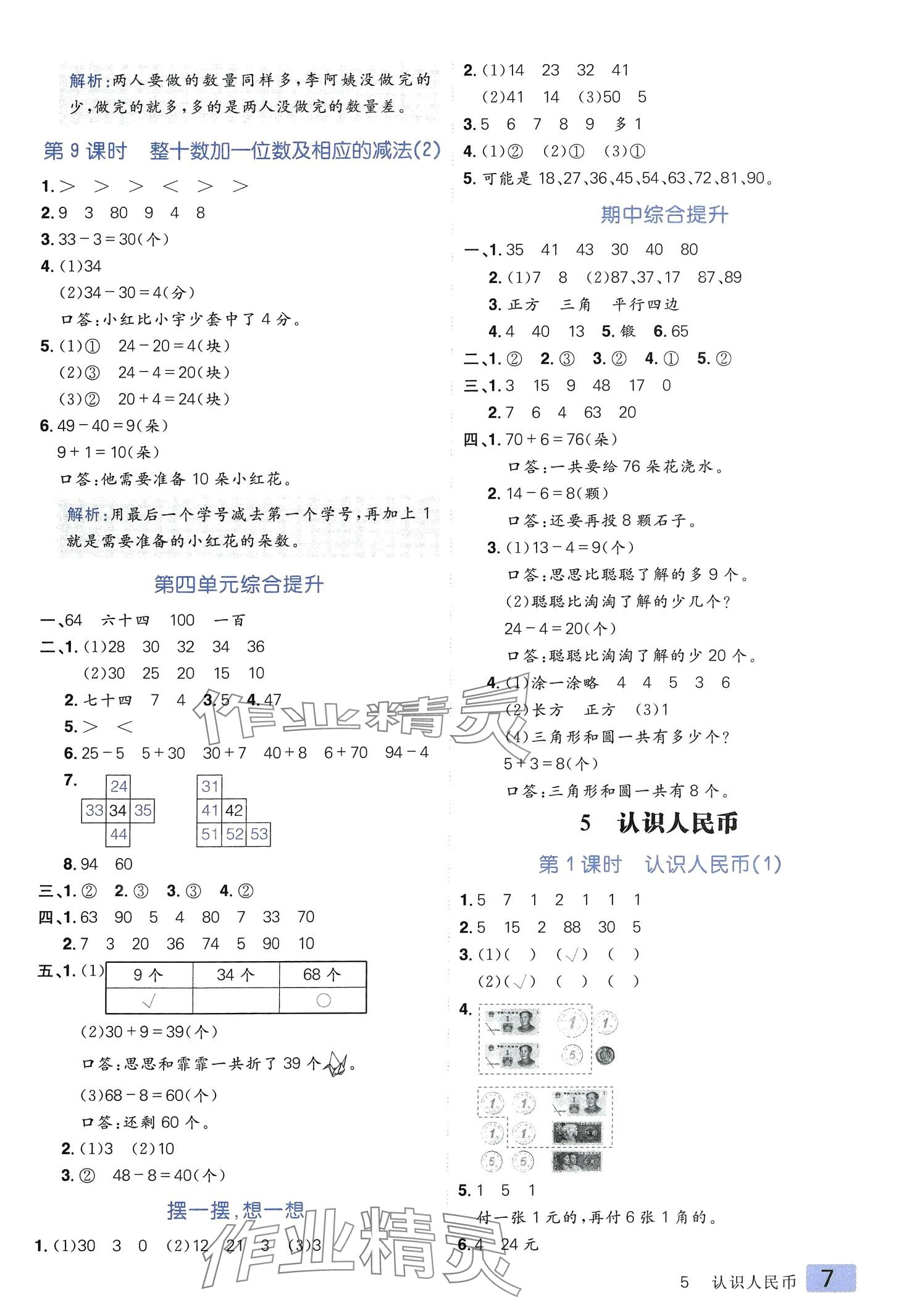 注:目前有些书本章节名称可能整理的还不是很完善,但都是按照顺序排列的,请同学们按照顺序仔细查找。练习册 2024年练出好成绩一年级数学下册人教版 答案主要是用来给同学们做完题方便对答案用的,请勿直接抄袭。