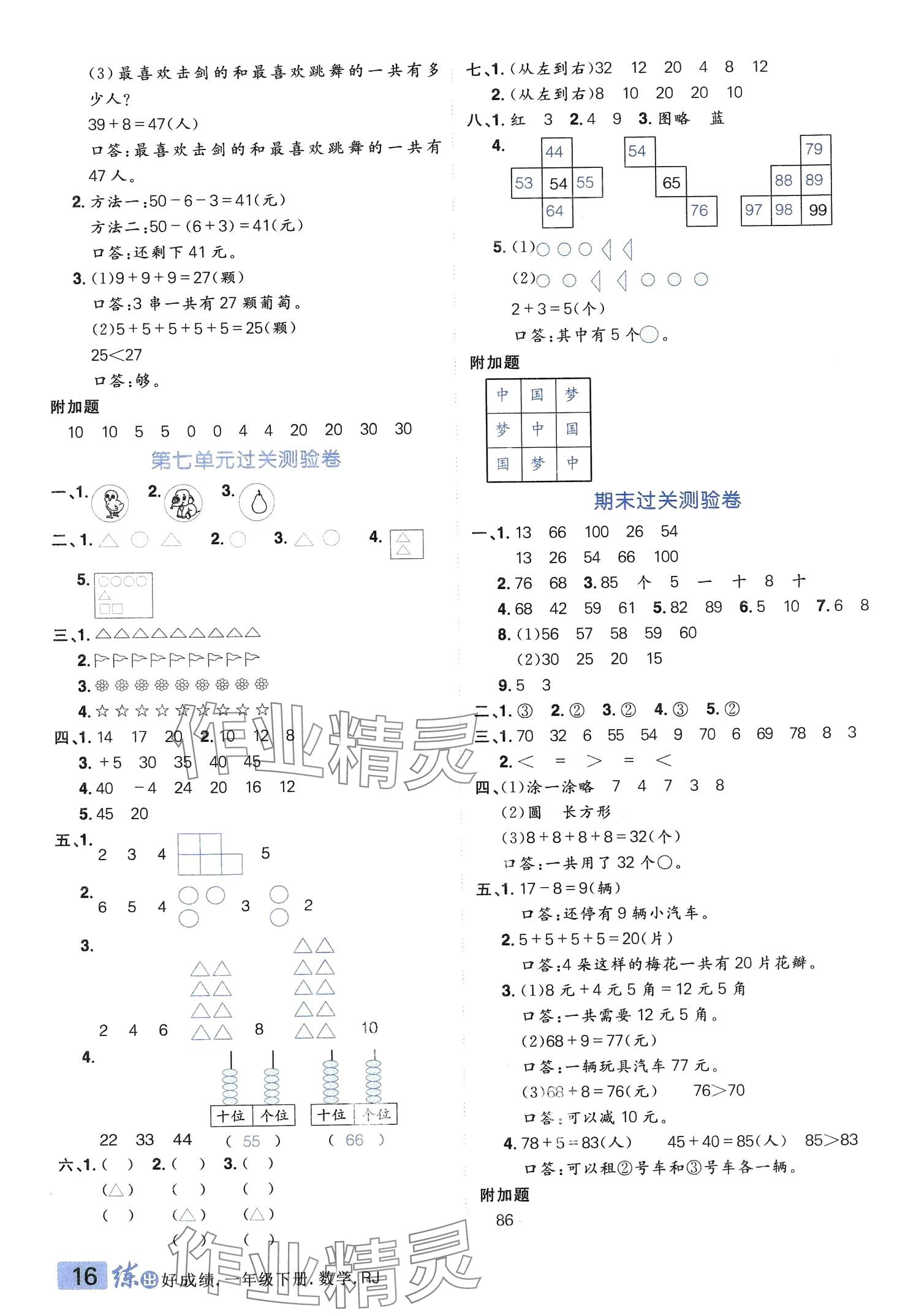 注:目前有些书本章节名称可能整理的还不是很完善,但都是按照顺序排列的,请同学们按照顺序仔细查找。练习册 2024年练出好成绩一年级数学下册人教版 答案主要是用来给同学们做完题方便对答案用的,请勿直接抄袭。