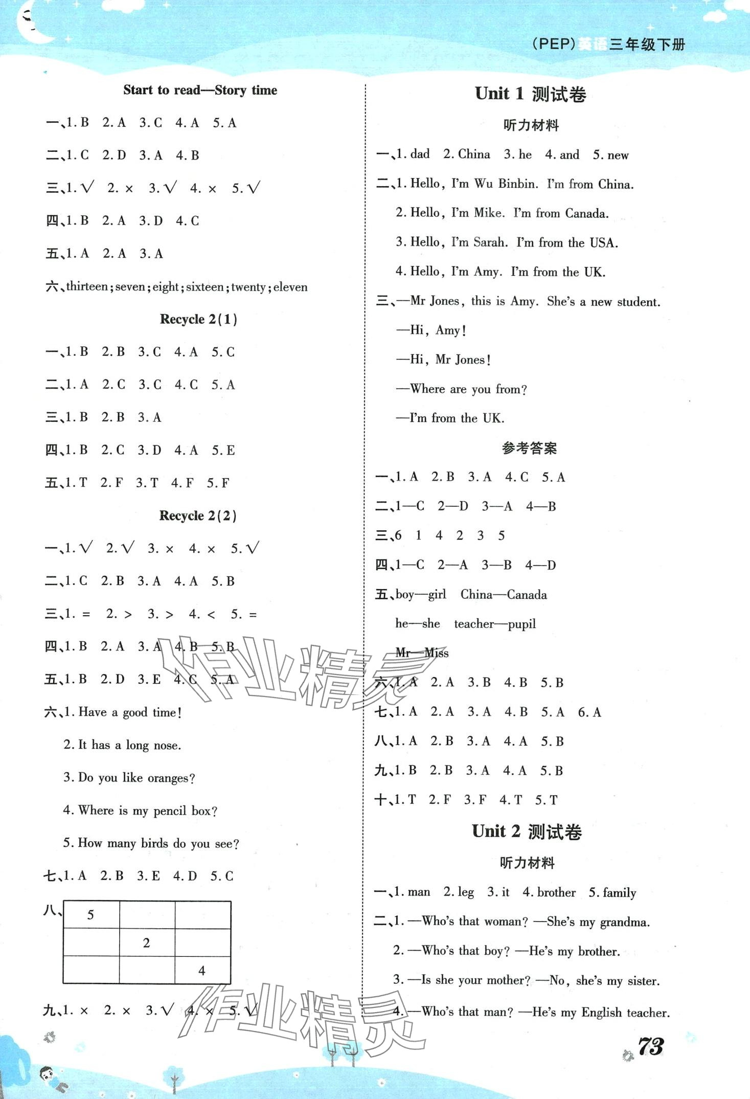 注:目前有些书本章节名称可能整理的还不是很完善,但都是按照顺序排列的,请同学们按照顺序仔细查找。练习册 2024年黄冈课课练三年级英语下册人教版 答案主要是用来给同学们做完题方便对答案用的,请勿直接抄袭。