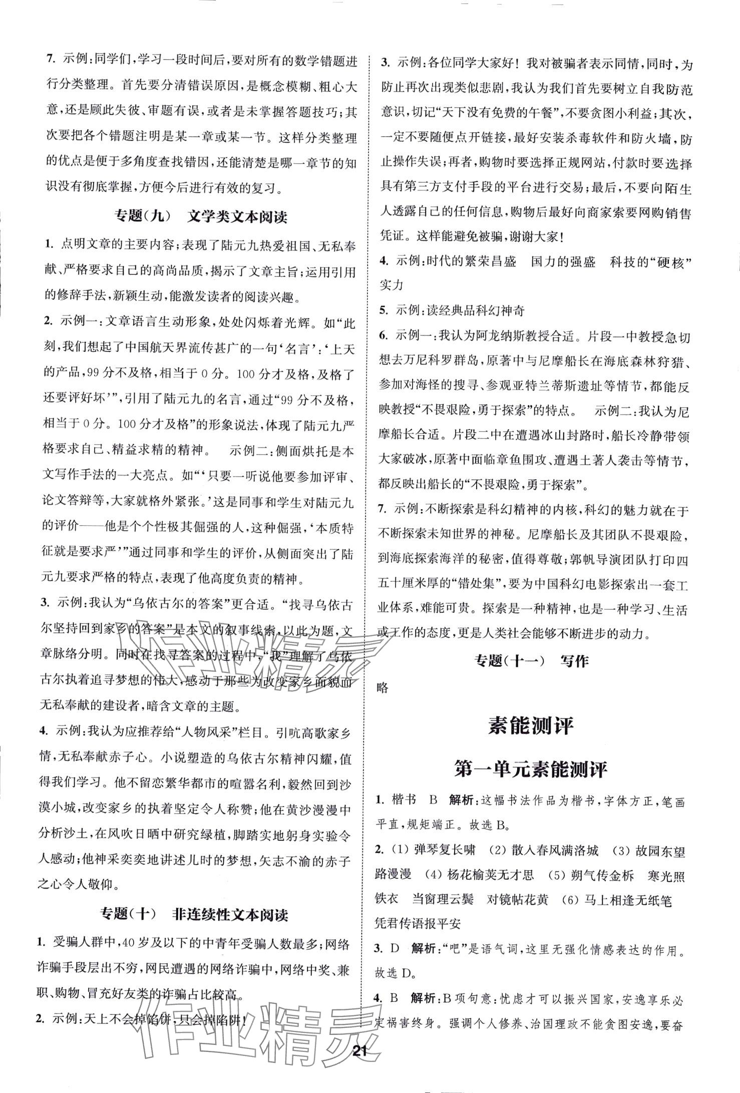 注:目前有些书本章节名称可能整理的还不是很完善,但都是按照顺序排列的,请同学们按照顺序仔细查找。练习册 2024年通城学典课时作业本七年级语文下册人教版山西专版 答案主要是用来给同学们做完题方便对答案用的,请勿直接抄袭。