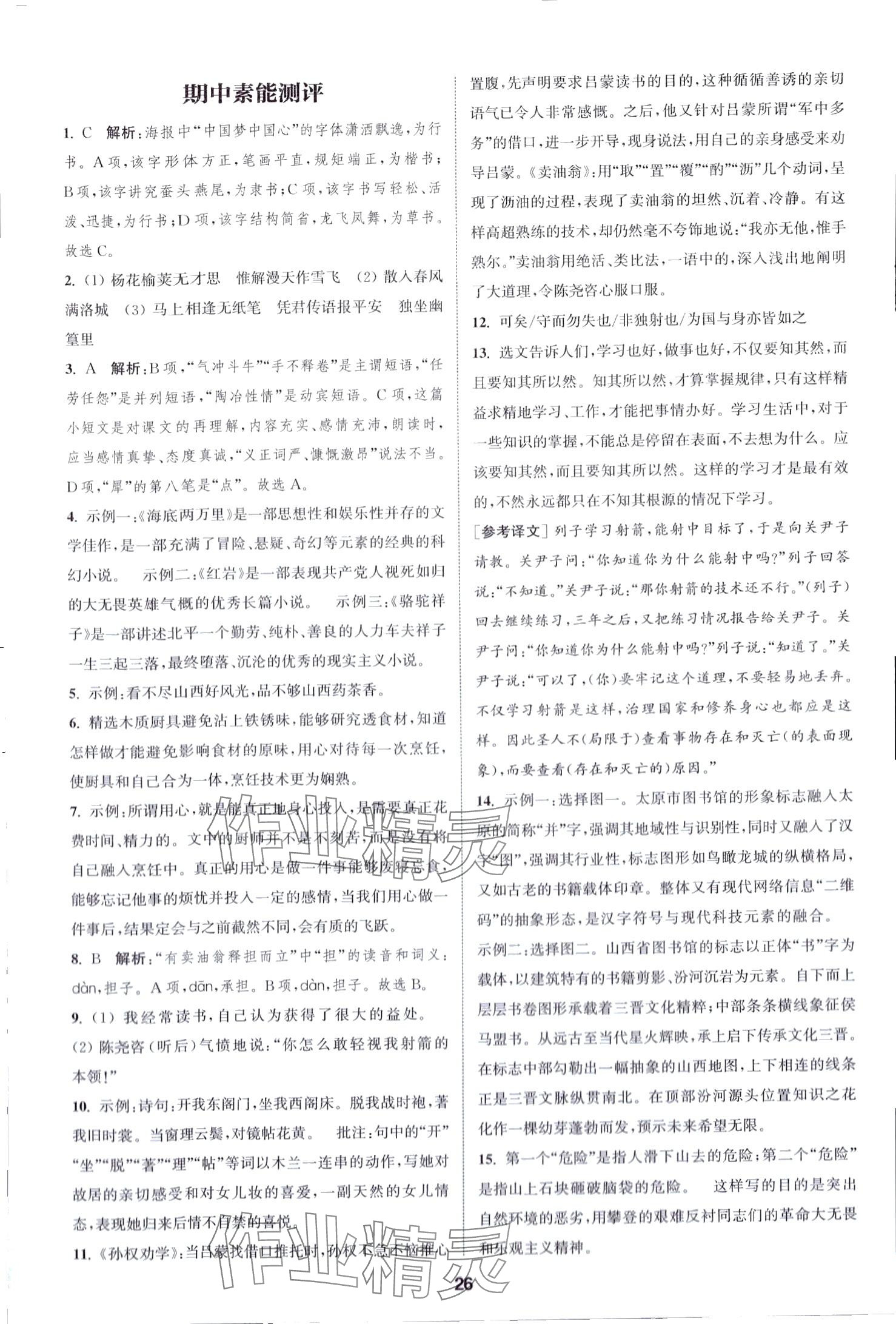 注:目前有些书本章节名称可能整理的还不是很完善,但都是按照顺序排列的,请同学们按照顺序仔细查找。练习册 2024年通城学典课时作业本七年级语文下册人教版山西专版 答案主要是用来给同学们做完题方便对答案用的,请勿直接抄袭。