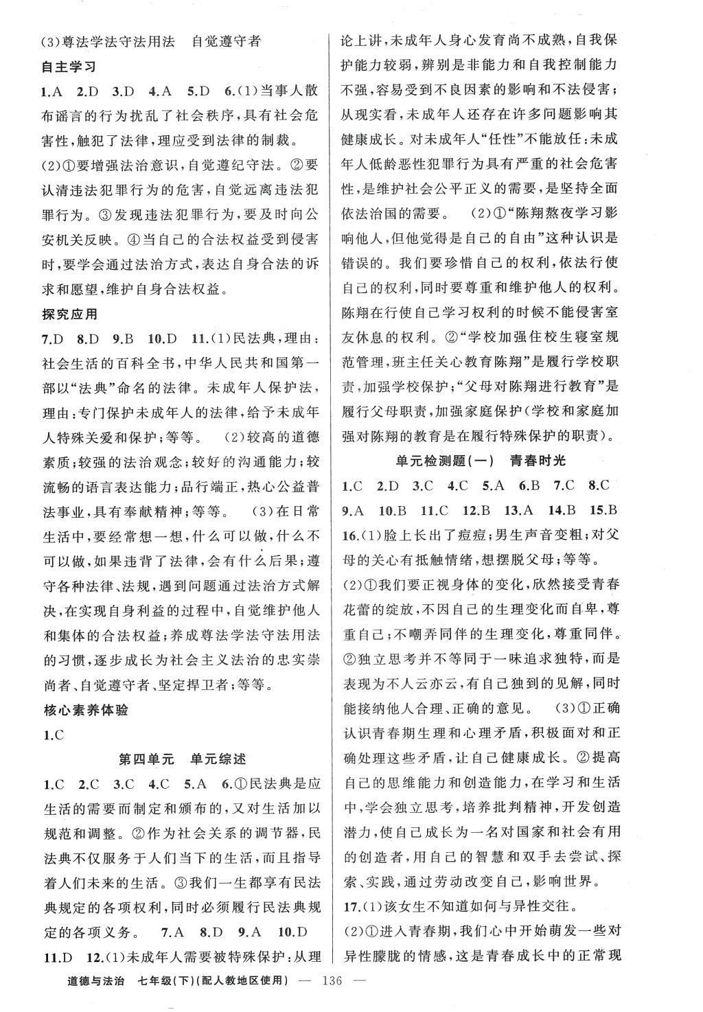注:目前有些书本章节名称可能整理的还不是很完善,但都是按照顺序排列的,请同学们按照顺序仔细查找。练习册 2024年原创新课堂七年级道德与法治下册人教版 答案主要是用来给同学们做完题方便对答案用的,请勿直接抄袭。