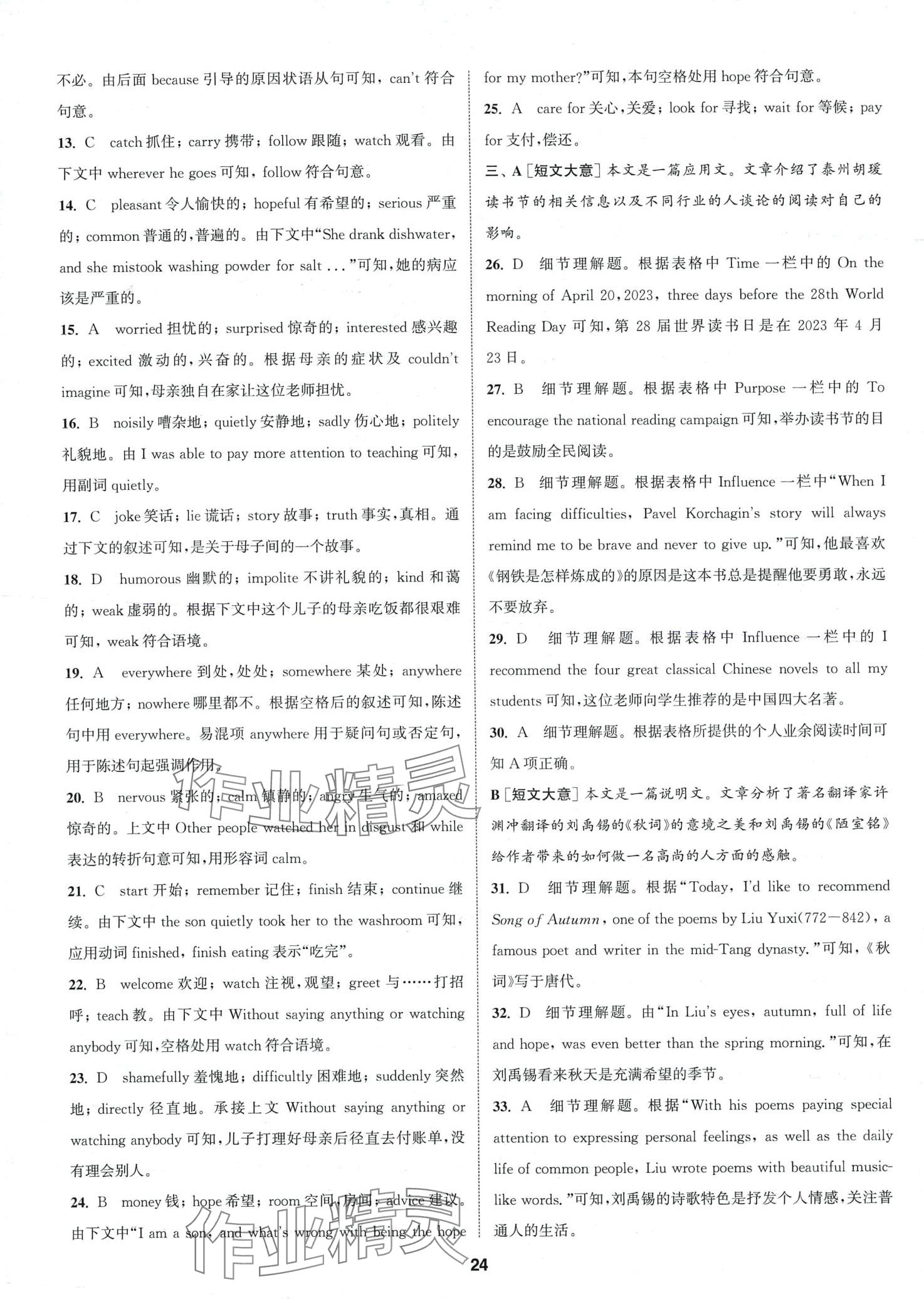 注:目前有些书本章节名称可能整理的还不是很完善,但都是按照顺序排列的,请同学们按照顺序仔细查找。练习册 2024年通城学典卷典英语中考江苏专版 答案主要是用来给同学们做完题方便对答案用的,请勿直接抄袭。