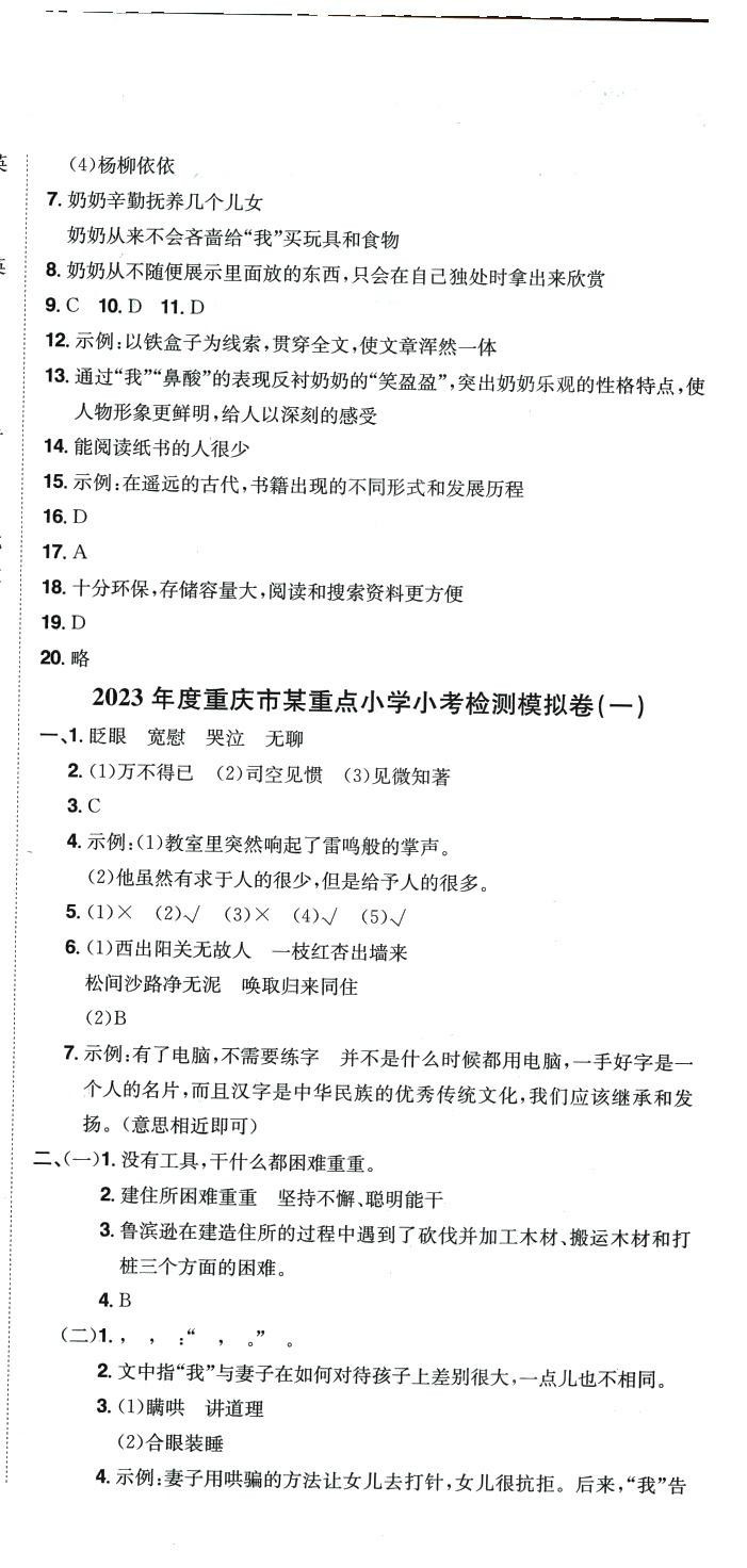 注:目前有些书本章节名称可能整理的还不是很完善,但都是按照顺序排列的,请同学们按照顺序仔细查找。练习册 2024年黄冈小状元小学升学考试真题精编卷六年级语文通用版 答案主要是用来给同学们做完题方便对答案用的,请勿直接抄袭。