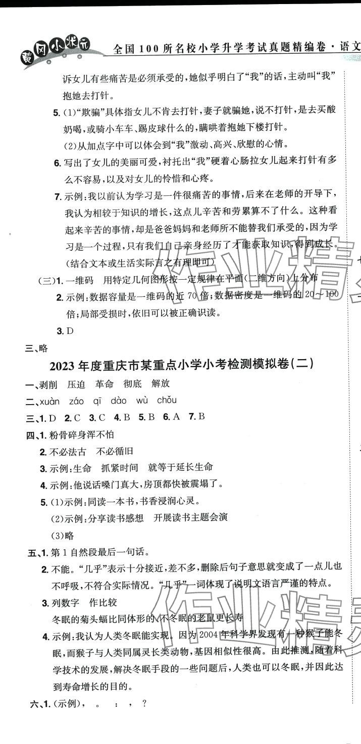 注:目前有些书本章节名称可能整理的还不是很完善,但都是按照顺序排列的,请同学们按照顺序仔细查找。练习册 2024年黄冈小状元小学升学考试真题精编卷六年级语文通用版 答案主要是用来给同学们做完题方便对答案用的,请勿直接抄袭。