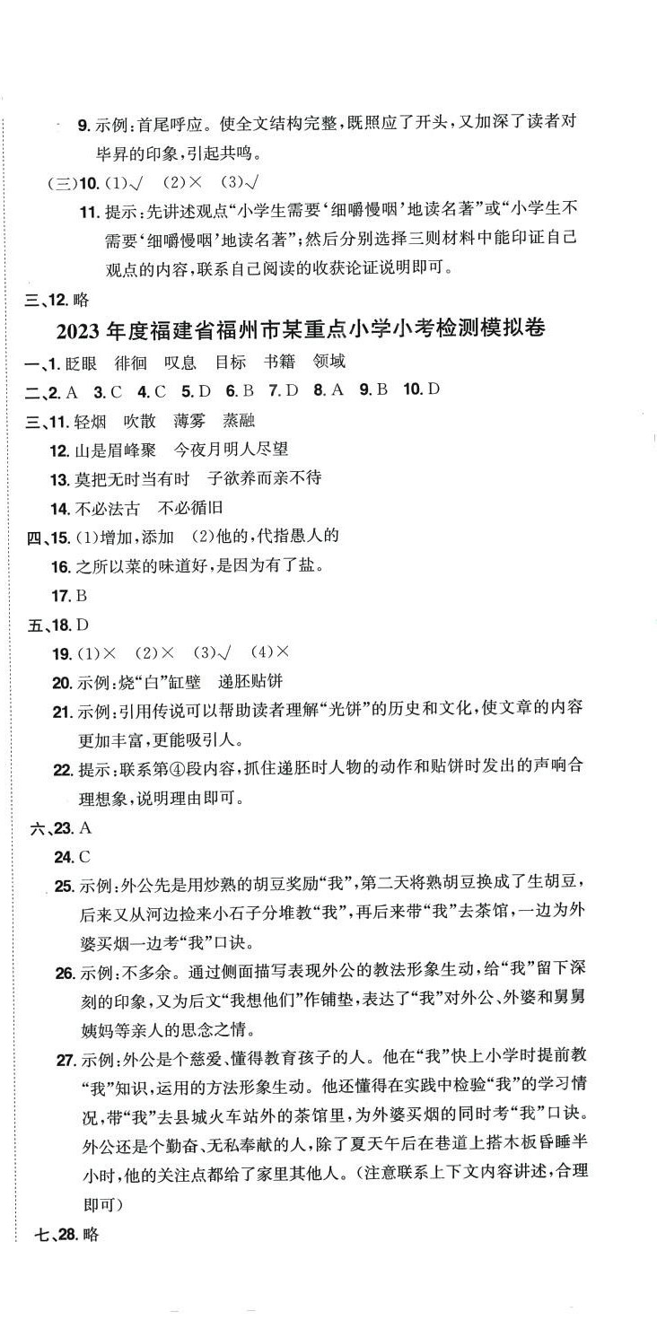 注:目前有些书本章节名称可能整理的还不是很完善,但都是按照顺序排列的,请同学们按照顺序仔细查找。练习册 2024年黄冈小状元小学升学考试真题精编卷六年级语文通用版 答案主要是用来给同学们做完题方便对答案用的,请勿直接抄袭。