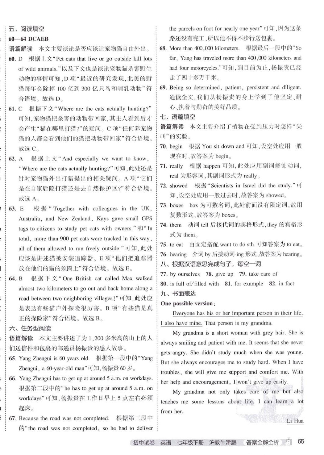 注:目前有些书本章节名称可能整理的还不是很完善,但都是按照顺序排列的,请同学们按照顺序仔细查找。练习册 2024年5年中考3年模拟初中试卷七年级英语下册沪教牛津版 答案主要是用来给同学们做完题方便对答案用的,请勿直接抄袭。