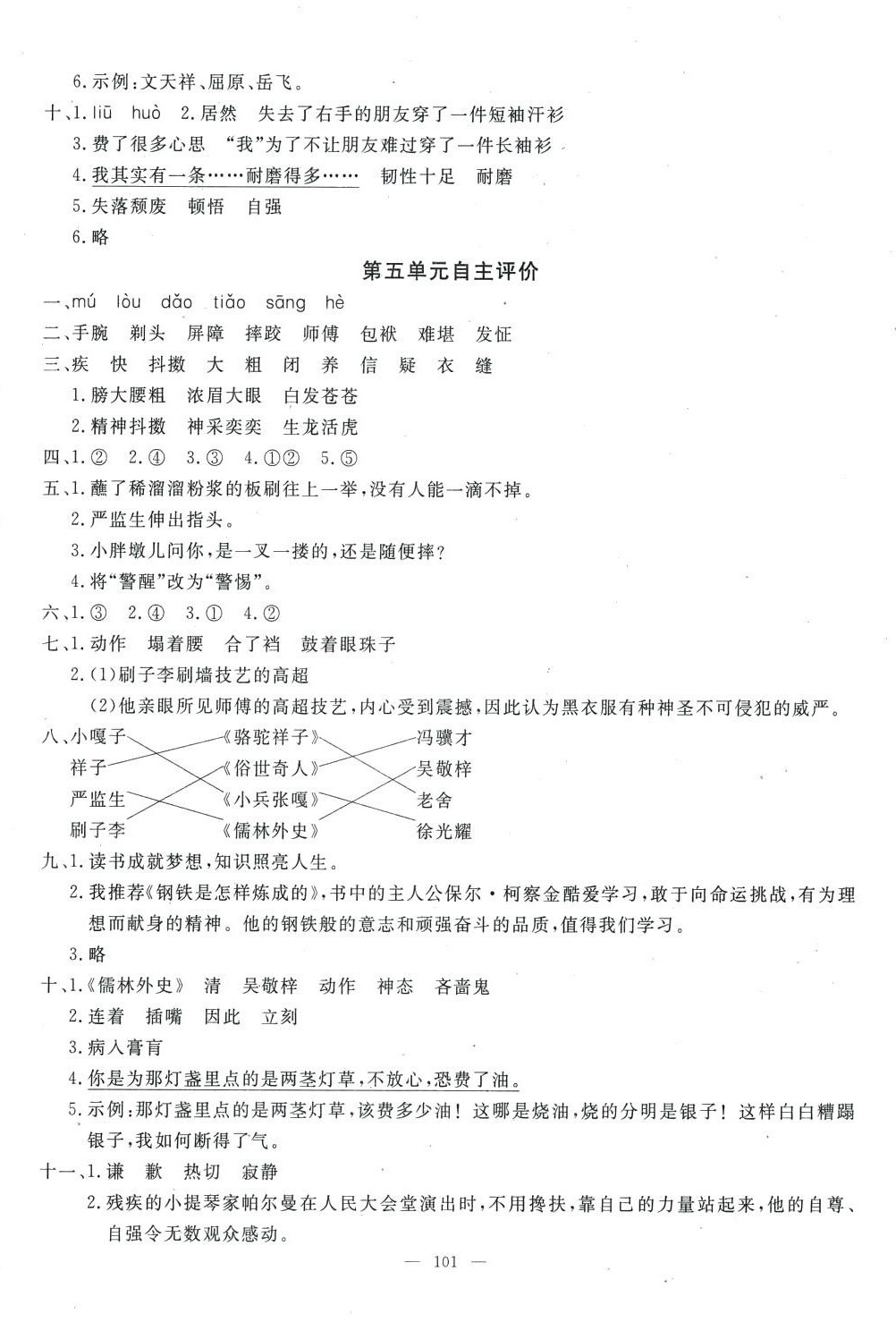 2024年智慧课堂自主评价五年级语文下册人教版