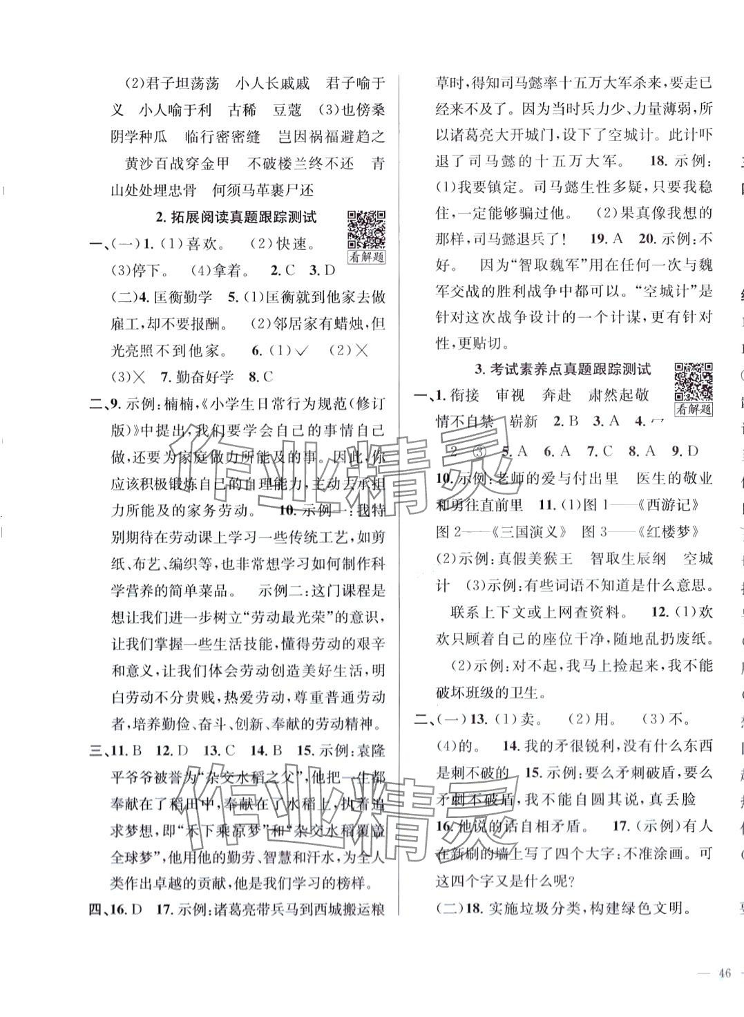 注:目前有些书本章节名称可能整理的还不是很完善,但都是按照顺序排列的,请同学们按照顺序仔细查找。练习册 2024年真题圈云南省小学考试真卷三步练五年级语文下册人教版 答案主要是用来给同学们做完题方便对答案用的,请勿直接抄袭。