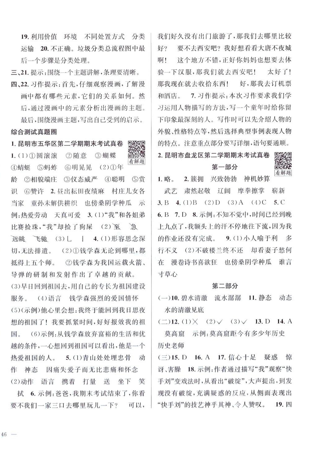 注:目前有些书本章节名称可能整理的还不是很完善,但都是按照顺序排列的,请同学们按照顺序仔细查找。练习册 2024年真题圈云南省小学考试真卷三步练五年级语文下册人教版 答案主要是用来给同学们做完题方便对答案用的,请勿直接抄袭。