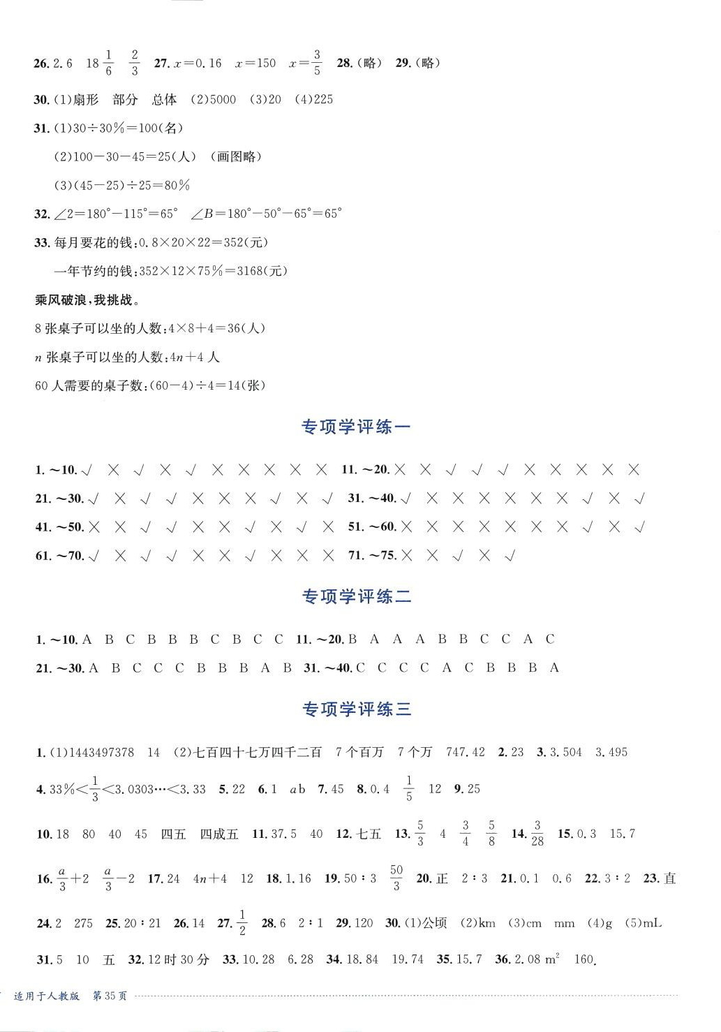 注:目前有些书本章节名称可能整理的还不是很完善,但都是按照顺序排列的,请同学们按照顺序仔细查找。练习册 2024年学评练六年级数学下册人教版 答案主要是用来给同学们做完题方便对答案用的,请勿直接抄袭。