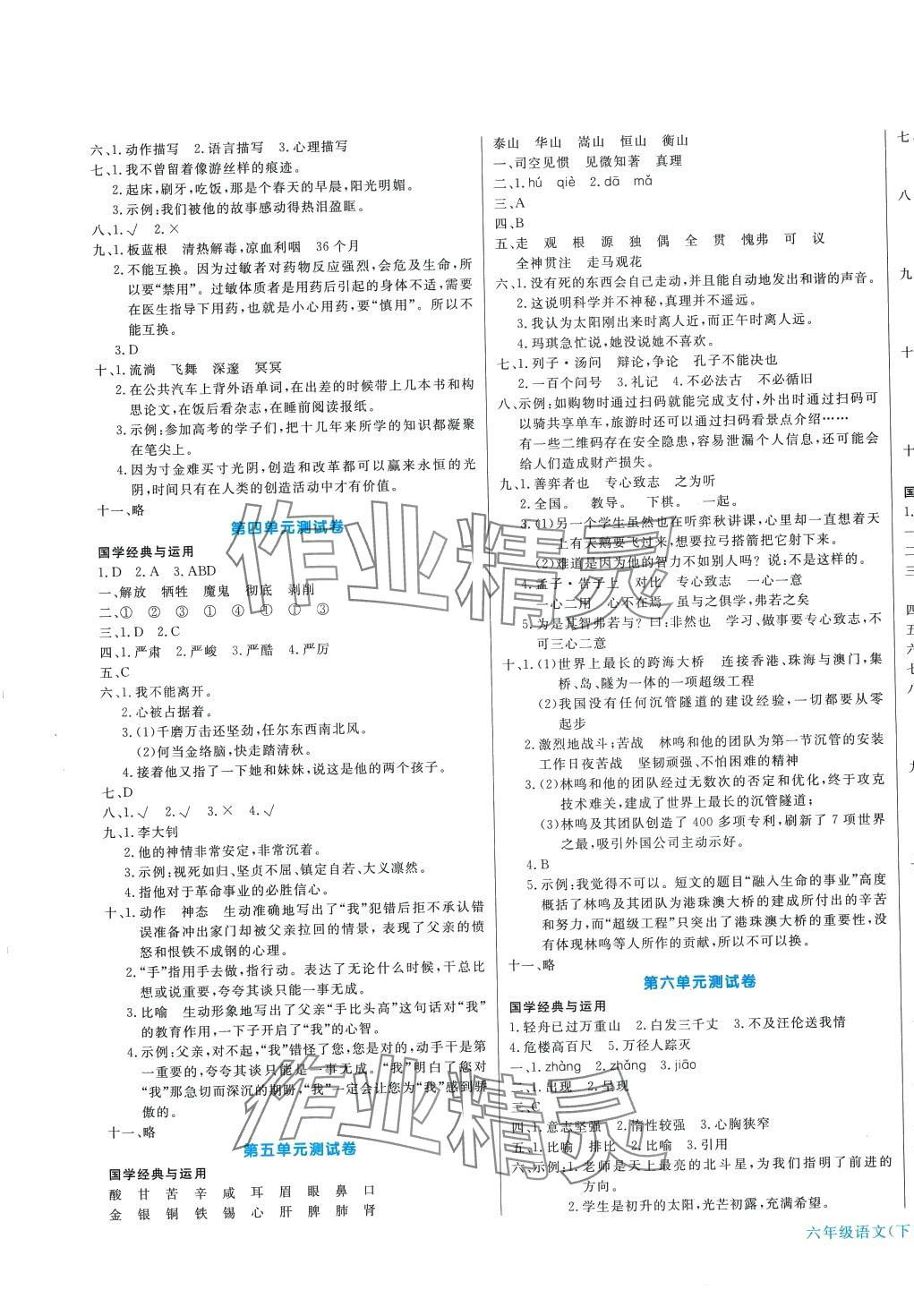 注:目前有些书本章节名称可能整理的还不是很完善,但都是按照顺序排列的,请同学们按照顺序仔细查找。练习册 2024年天天向上周周测100六年级语文下册人教版 答案主要是用来给同学们做完题方便对答案用的,请勿直接抄袭。